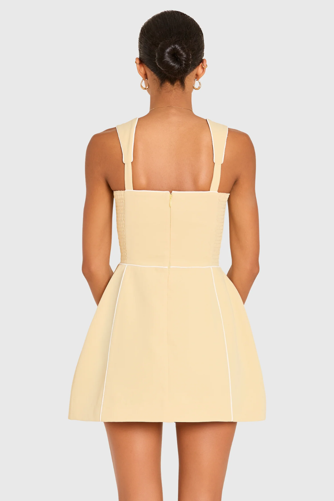 - Smocking at the side back and invisible zipper at the center back