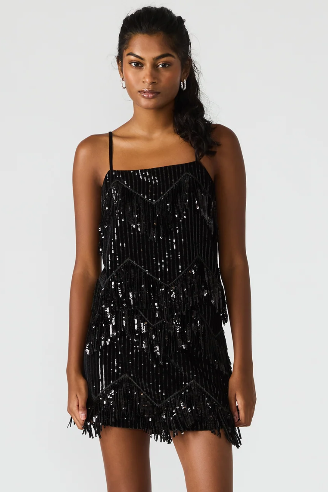 A mini made for the spotlight. This Cindi Sequin Skirt brings major sparkle with its shimmering embellishments and playful fringe that moves with every step. It's bold, statement-making, and built to shine all night long. Perfect for holiday parties, birthdays, girls' nights out, dance floors, and any glam event on your calendar.