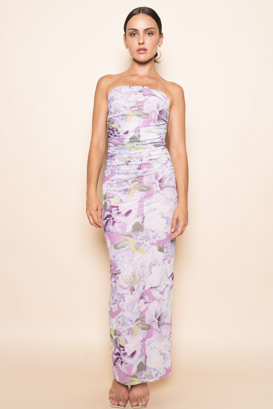 Soft glam just got a floral upgrade. This floral Lavender Florals Maxi Dress is made to highlight your shape while keeping things effortless and dreamy. The tube-style neckline shows off your shoulders, while the side ruching snatches the waist and adds that flattering drape effect. The pastel floral print gives romantic energy, and the maxi length keeps it sleek, elegant, and just a little dramatic. Perfect for spring weddings, garden parties, vacation dinners, bridal showers, and sunset date nights.