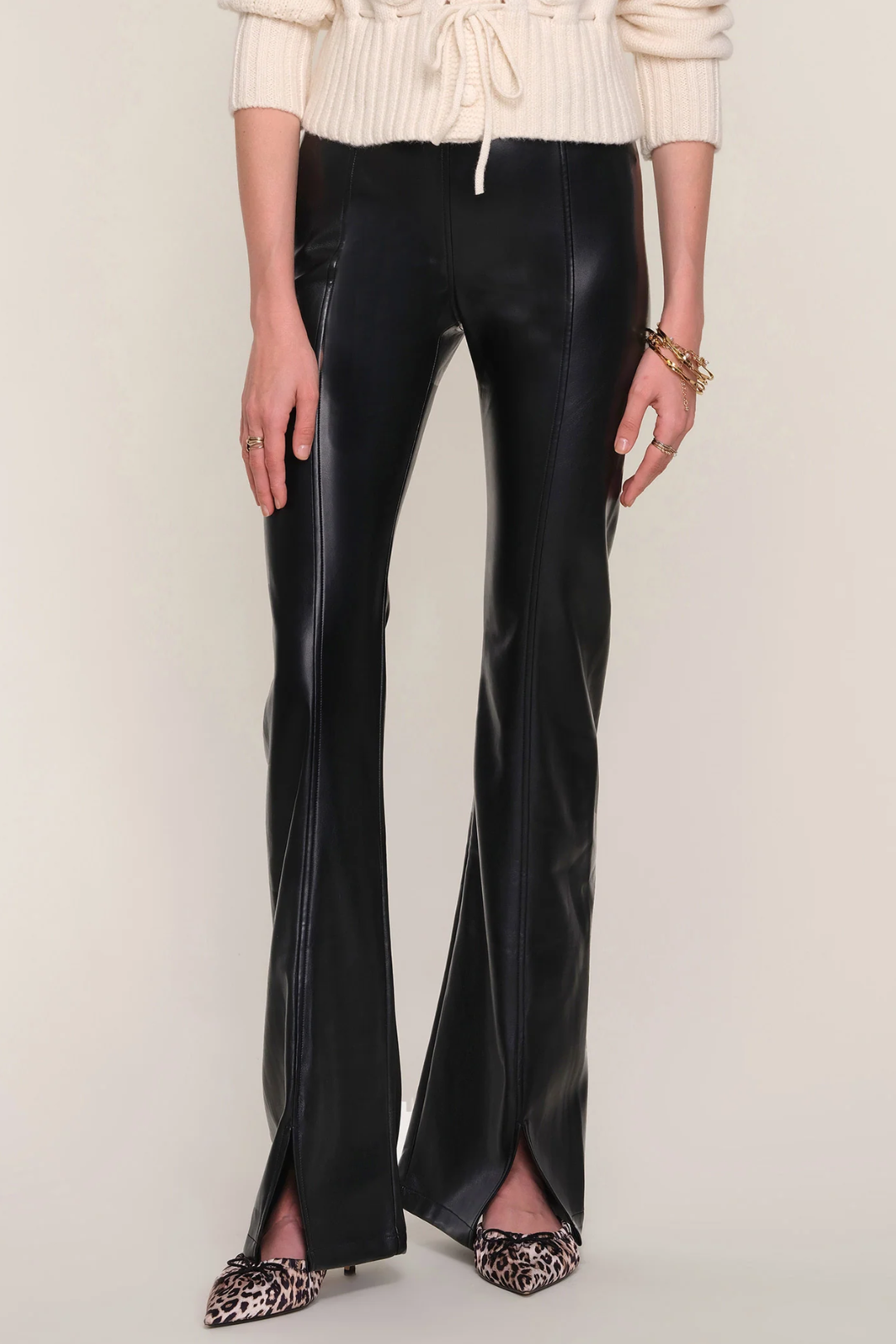 Meet your new power-pant moment. The Nicollette Pant is that sleek, confidence-on-demand piece your wardrobe has been waiting for. Designed in soft faux leather with a smooth, sculpting slim fit, these pants bring instant edge without sacrificing comfort. The front-slit hems add a subtle statement that shows off your shoes just right. Perfect for nights out, casual chic office days, or anytime you want an effortlessly cool, dressed-up vibe.