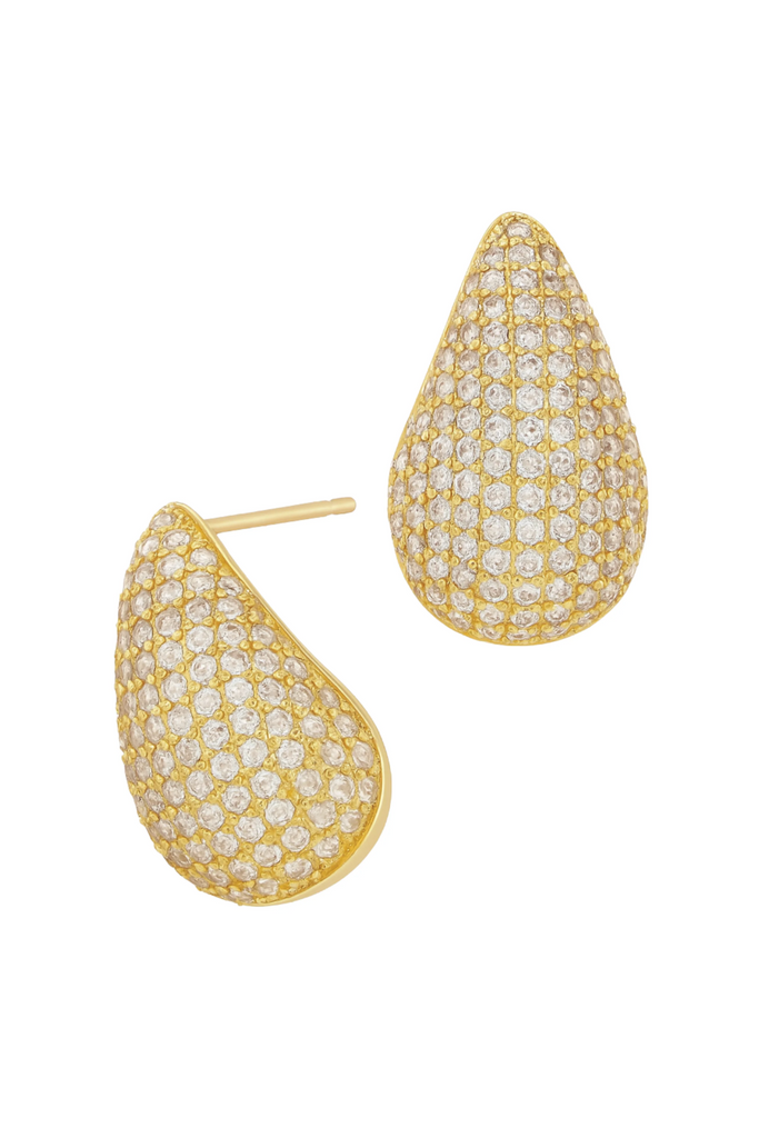 - Teardrop-domed shape fully encrusted with meticulously set CZ stones