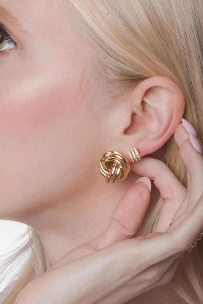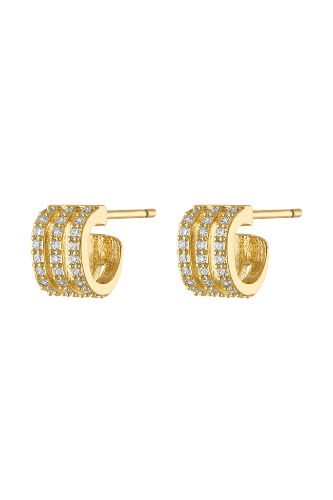 These Aster Triple Curve Stud Earrings bring instant cool-girl shine. It's a sleek curved shape with a dazzling pavé set of dainty cubic zirconia stones. They give big sparkle in the most minimal, modern way. Perfect for daily glam, dinner nights, work-to-weekend fits, gifting your bestie, or elevating any look with a little extra glow.