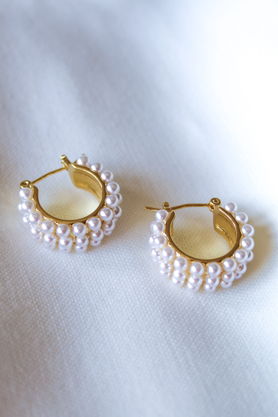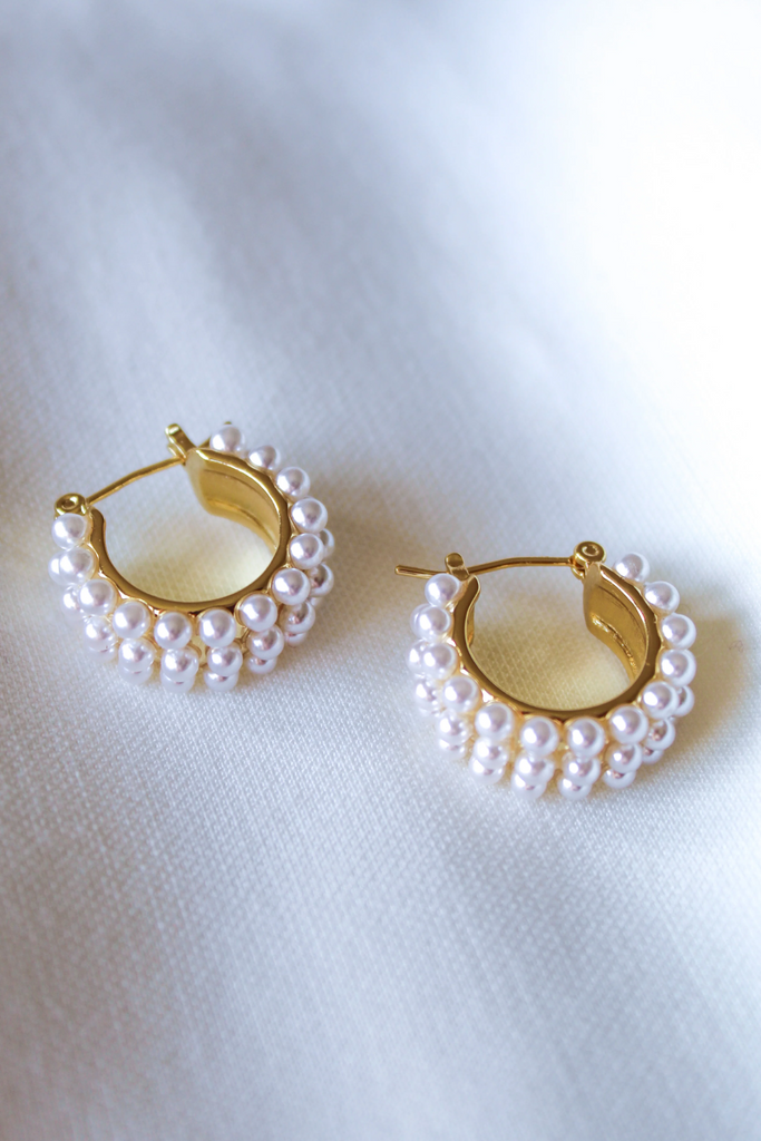 Glam, feminine, and made to turn even your simplest outfit into a moment. The Hailey Pearl Hoops are all about soft radiance, wrapping luminous pearls around a gold-plated base for an instantly elevated look. Perfect for brunch dates, holiday dinners, dressing up denim, or gifting someone who loves a little luxe.