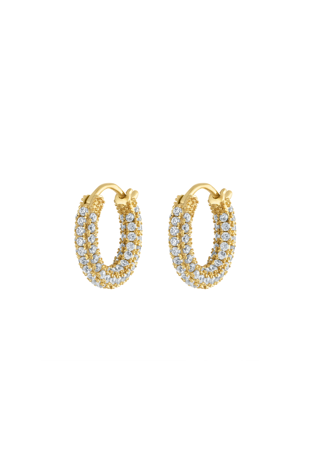 Turn up your everyday shine with these Pave Huggie Earrings. These mini hoops bring the perfect mix of subtle glam and clean-girl sparkle—ideal for stacking or stealing the spotlight solo. Perfect for daily sparkle, work days, date nights, and brunch. They're your go-to pair for leveling up literally any outfit.