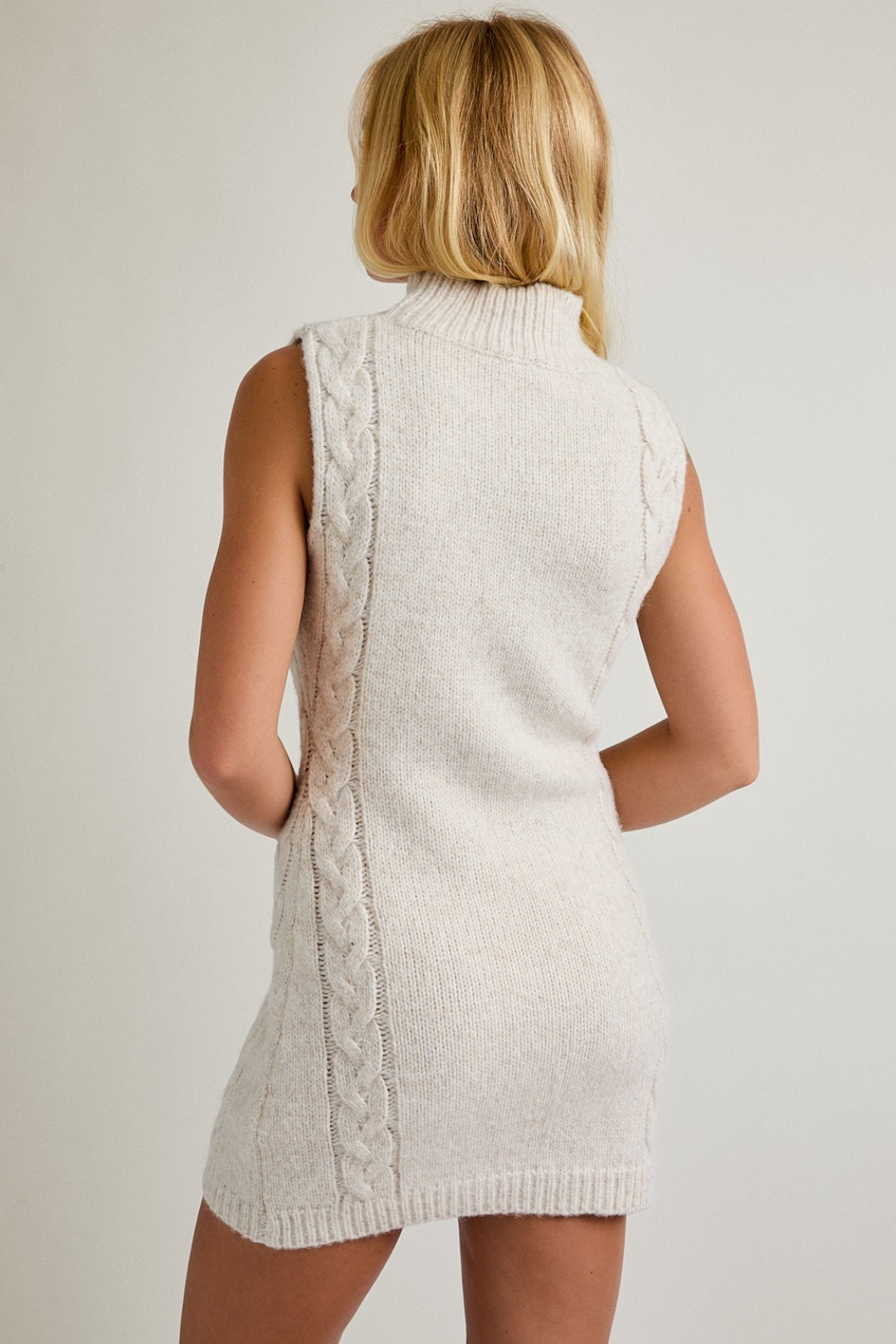 Cozy yet chic, meet this fall essential Cable Sweater Dress. Designed with a mock neckline and soft cable detailing along the sides, it hugs the figure while keeping a relaxed, comfortable feel. The oatmeal hue adds a timeless touch, making it perfect for everything from casual coffee runs to holiday gathering.