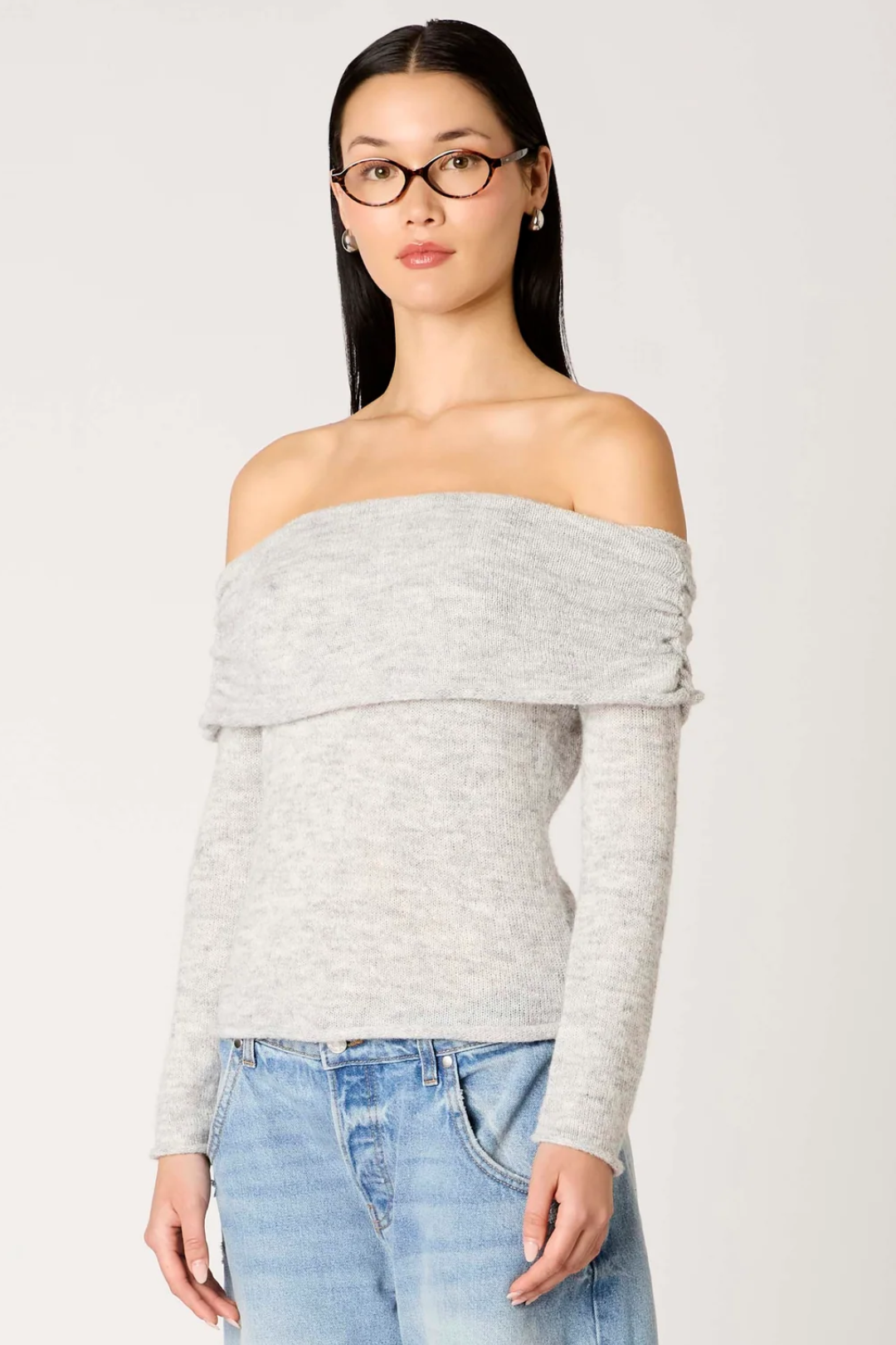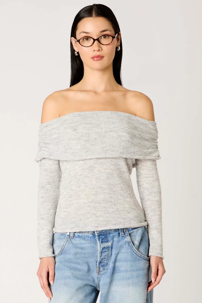 An off-shoulder moment you'll want on repeat. The Zinnia Sweater is crafted in a stretchy ribbed knit with a fold-over neckline that slips off the shoulders for that effortless, feminine edge. Perfect for casual coffee runs and date nights, and it can be paired with everything when you want comfort and style.