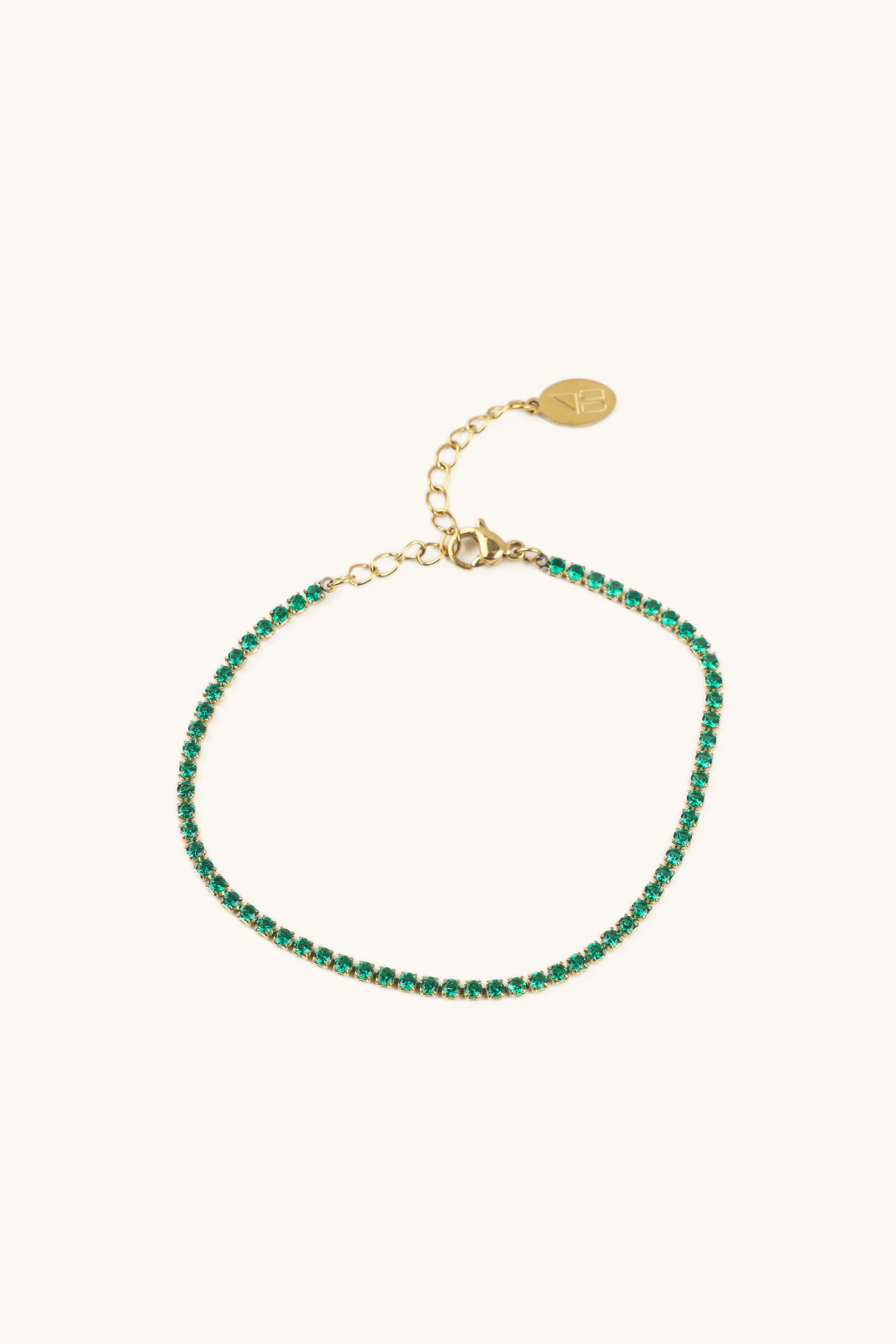 The Birthstone Micro Tennis Bracelet - May by Nikki Smith Designs is made for May girls, featuring rich green stones that symbolize growth, love, and fresh energy. The vibrant emerald stones add a bold yet refined pop of color while still keeping that dainty, everyday feel. Finished with an adjustable chain, it's easy to wear and sits comfortably for all-day styling. Perfect for May birthday, meaningful gifting, daily wear, or adding a lush green touch to your jewelry stack. Pair it with gold pieces or wear it solo with neutrals or all-black outfits to let that emerald color stand out effortlessly.