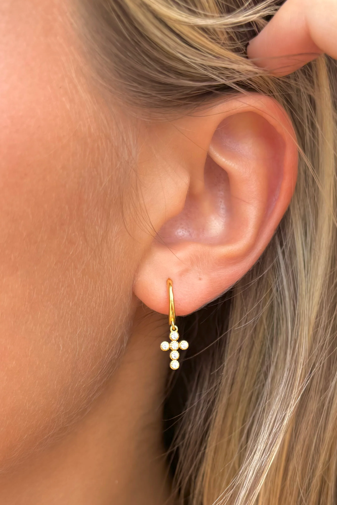 Crystal Cross Gold Huggies