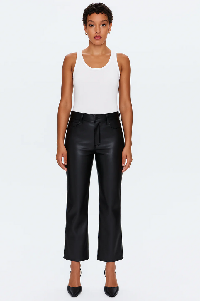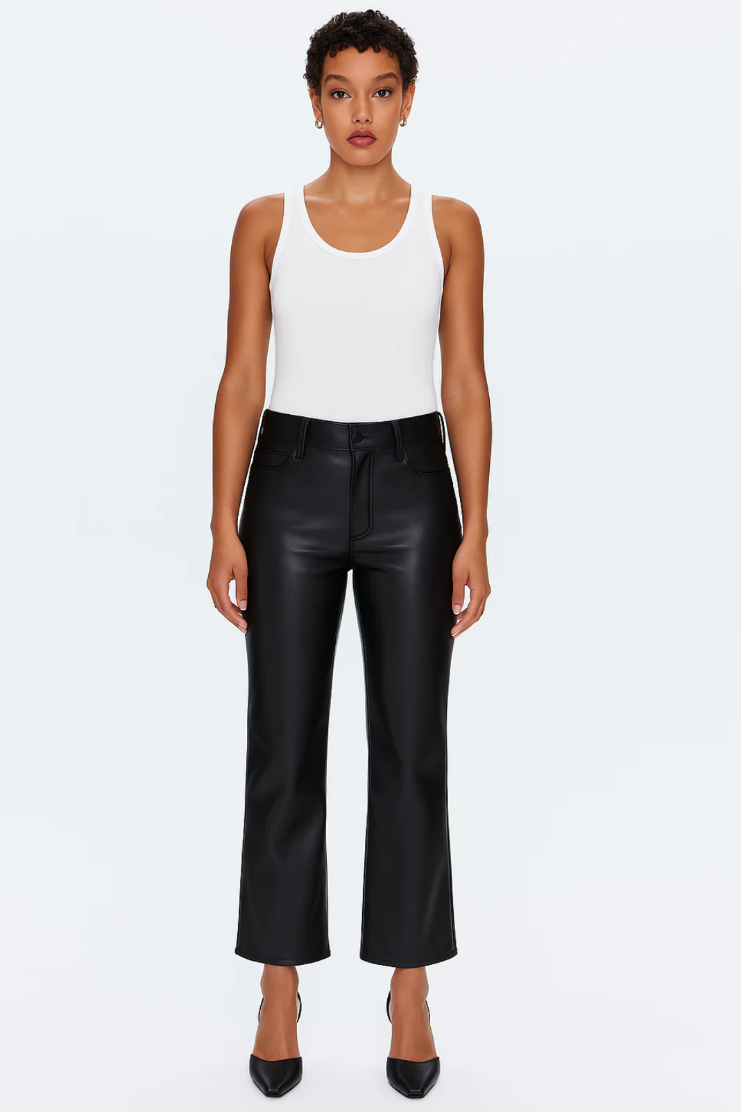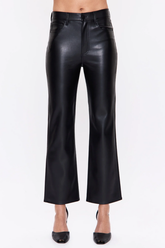 Elevate your everyday look with these edgy Ally Faux Leather Pants in Black Onyx. Crafted from Pistola's signature comfort stretch fabric with a slightly wider leg, relaxed fit, belt loops, and cropped, ankle length hem with a clean finish. Perfect for girls' night out or any other events.