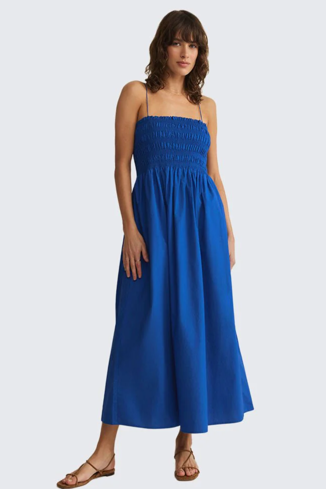 The Cornelia Maxi Dress is that throw-on-and-glow piece your closet needs. Designed with a fully smocked bodice that hugs just right before flowing into a relaxed skirt, it gives you shape up top and easy movement through the bottom. The square neckline keeps it modern, while the lightweight cotton poplin fabric feels breathable and soft all day long. Perfect for summer vacations. brunch dates, beachside dinners, weekend markets, and warm-weather events where you want to feel comfy.
