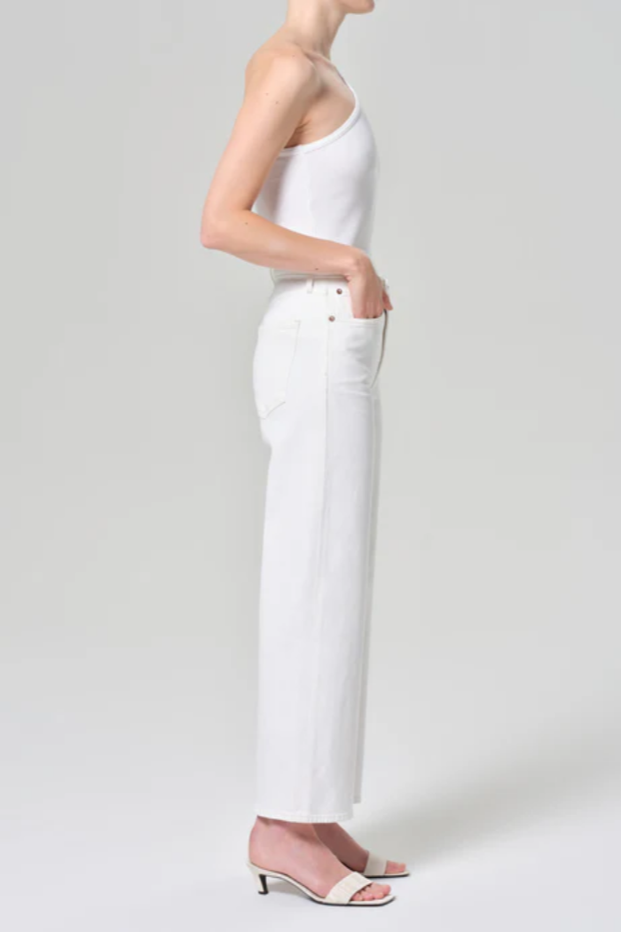 The Harper is crafted from regenerative cotton with extra stretch for ultimate comfort. Featuring a relaxed mid-rise fit, it has a flattering square top block and a straight leg. Made in white denim, it offers a crisp, fresh look that's both versatile and stylish. Perfect for pairing with everything from casual tees to elevated tops, this piece is an essential wardrobe staple.