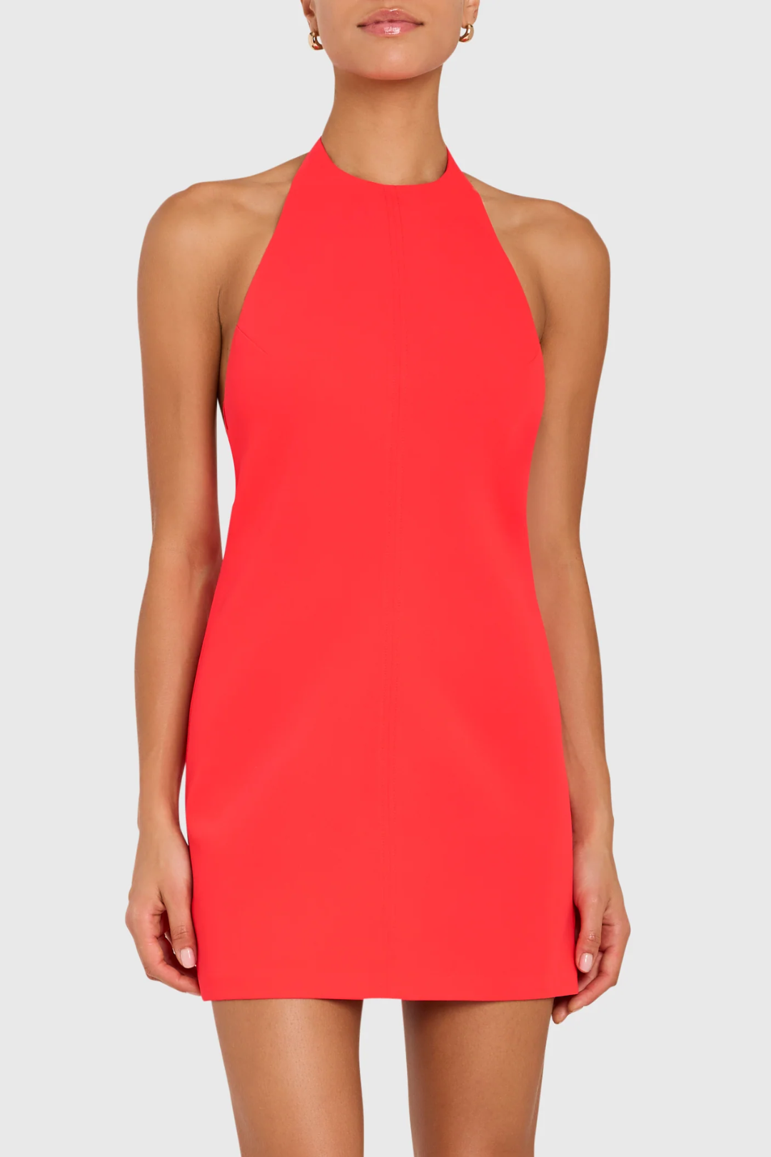Structured, bold, and not here to blend in. Steal the spotlight in Amanda Uprichard's Donahue Dress. Featuring a flattering halter neckline, a low open back, and a structured silhouette that hugs in all the right places. Fully lined for comfort and finished with a discreet center back zipper, it's your go-to for nights out, special events, or any moment that calls for a little drama.