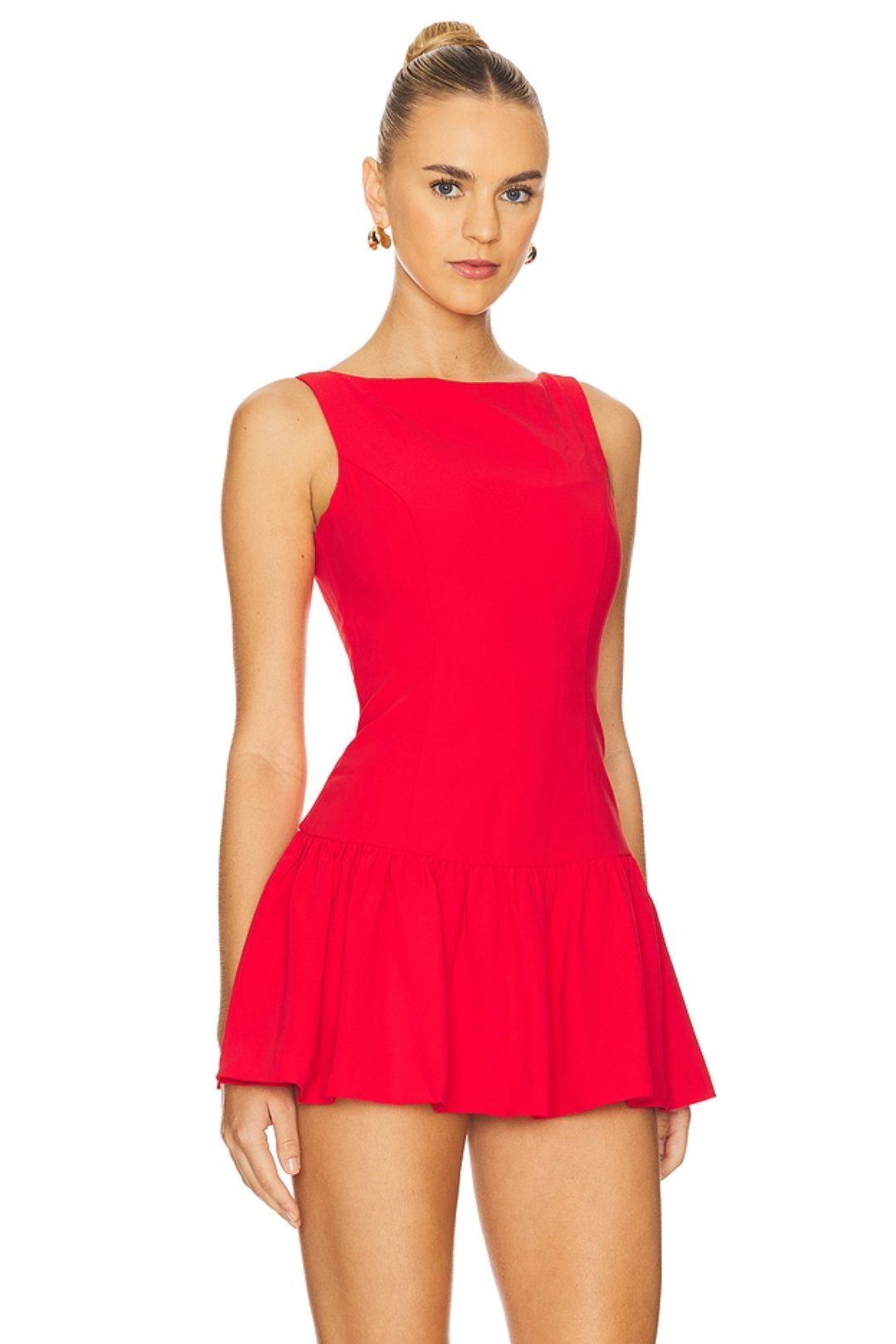 The Katina Skort Romper from Amanda Uprichard is giving main character vibes. From the sleek boat neckline in the front to the two slim straps in the back, it's low-key classy but still flirty. The skort design means you get the best of both worlds—it looks like a mini and feels like shorts, so you can move, dance, and live your best life without worrying about the fit. Perfect for gallery dates, brunch, cocktail nights, or elegant dinners.