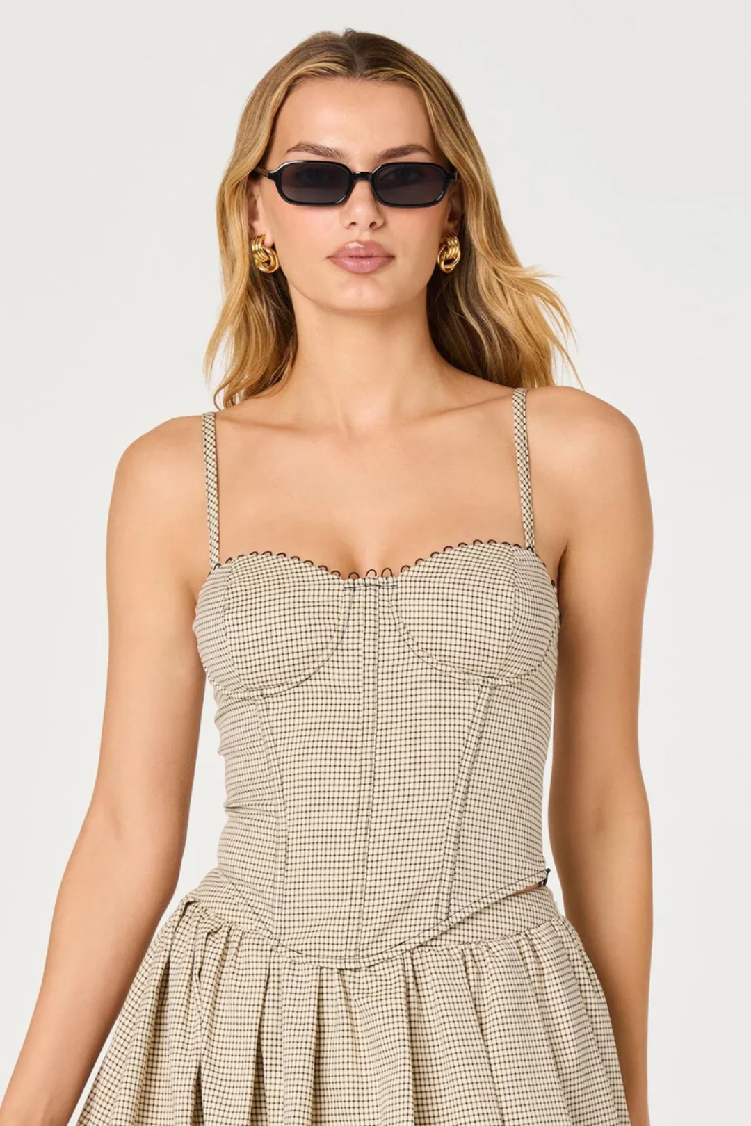 Feminine, flattering, and quietly confident. The Chasity Houndstooth Bustier Top instantly upgrades your look. The black tan houndstooth print feels timeless, while the structured fit hugs you in all the right places. Perfect for date nights, dinner plans, girls' nights out, holiday parties, or dressing up your everyday denim.