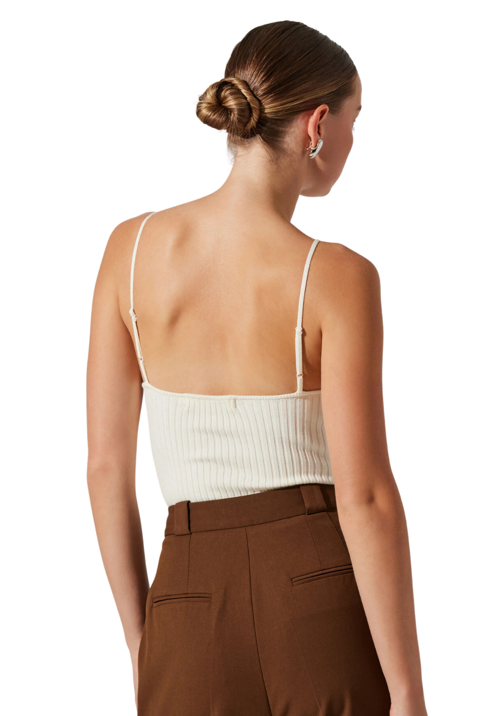 Make everyone swoon with this Jenini Sweater Top from ASTR the Label. It's a pull-on style ribbed top with adjustable spaghetti straps, a high neckline, and a low back. Perfect to wear for cocktail parties, intimate dates, or other special events.