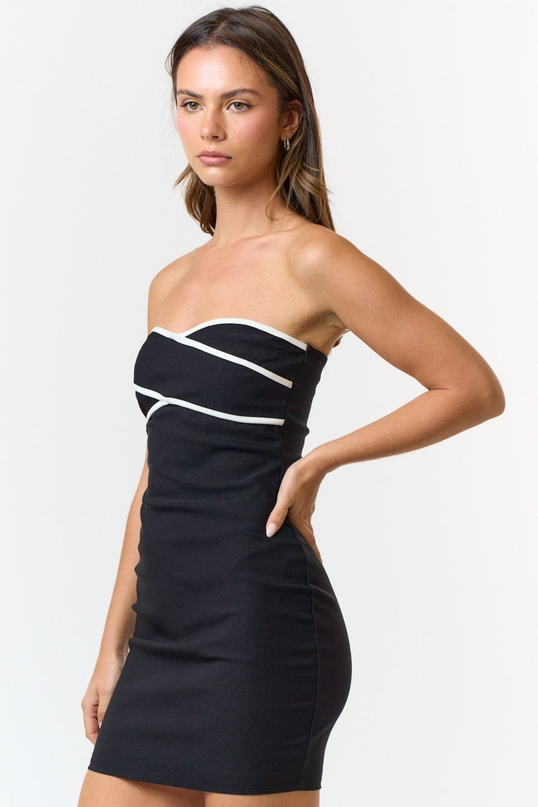 Make an entrance with this bold and undeniably chic Twist Dress. Featuring a striking contrast sweetheart neckline and a bodycon silhouette. Perfect for cocktail hours, dinner dates, or girls' nights out.