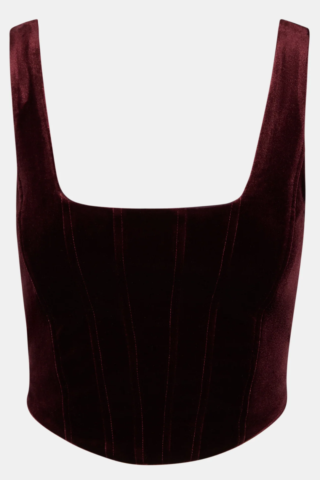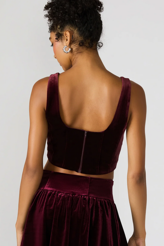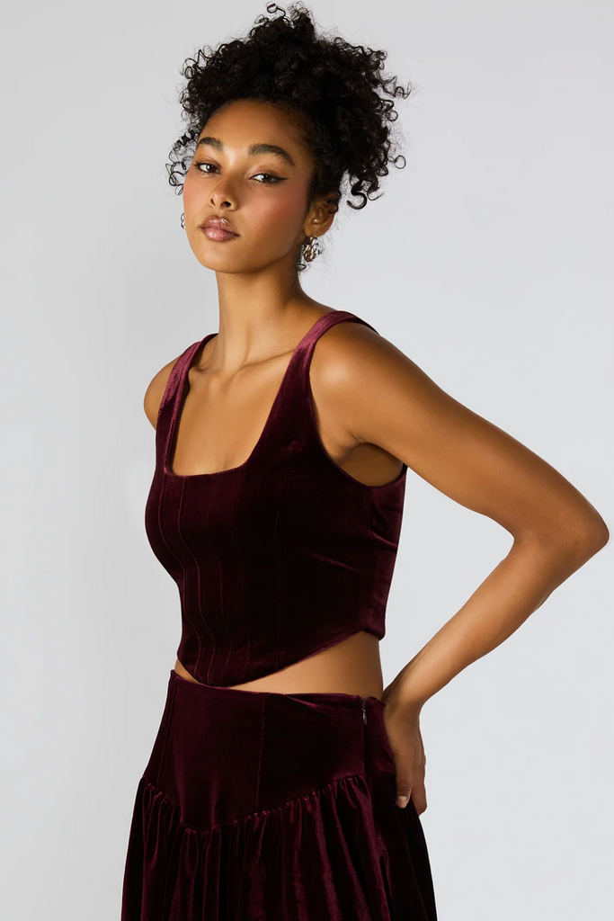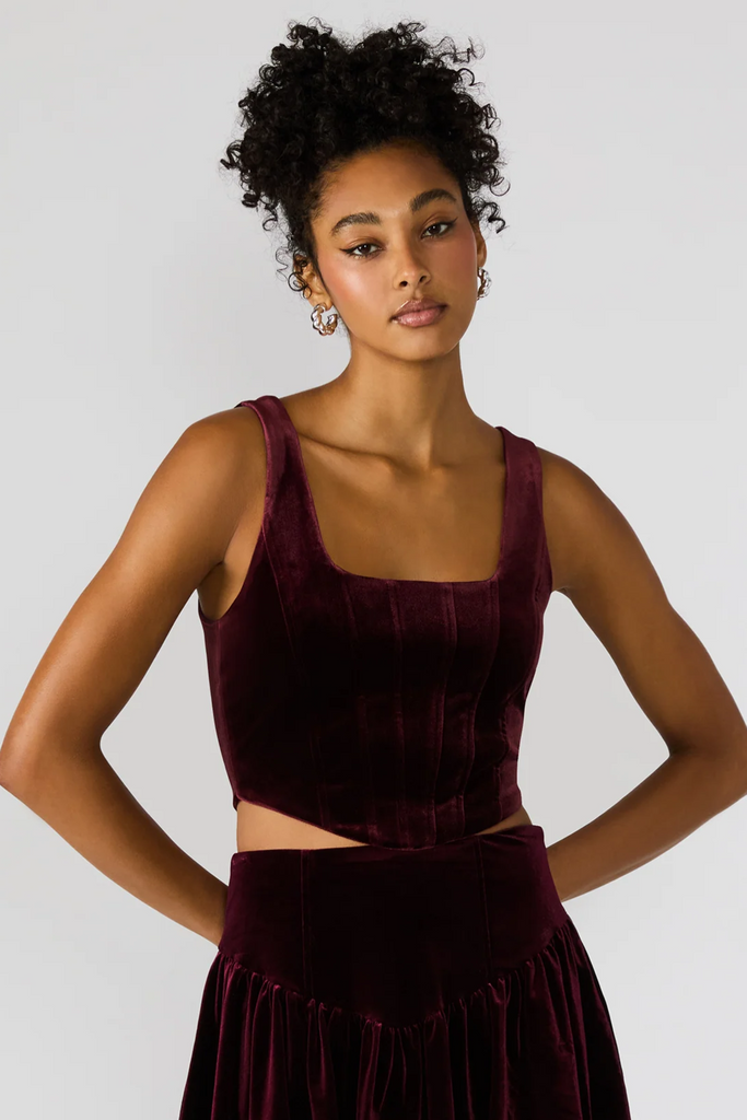 Steve Madden's Aryanna Top is giving that luxe, night-out energy with zero effort. It features a square neckline, sleeveless cut, and a sleek, cropped silhouette, all wrapped in wine-colored velvet. Perfect for holiday parties, dinner dates, girls' nights, or any event where you want a bold, velvety statement.