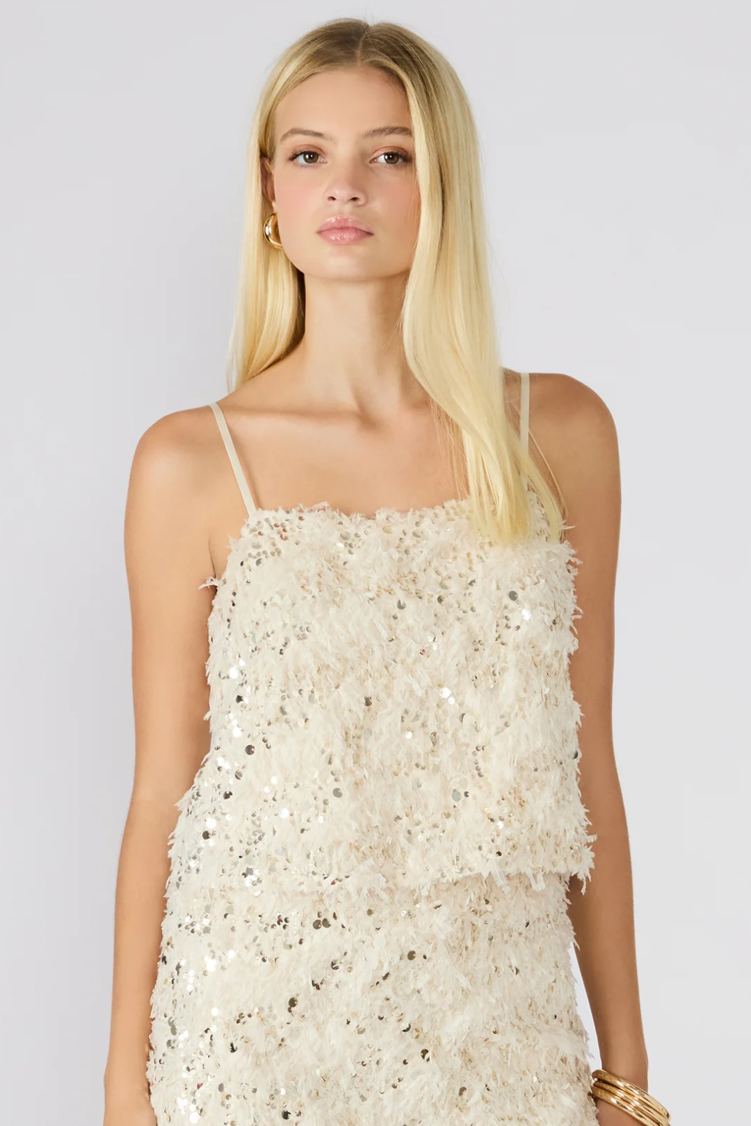 So fancy and full-on main character energy. This Blakelyn Feather Top brings all the glam with delicate feather details and shimmering sequin embellishments that absolutely stand out under party lights. Perfect for girls' night, birthdays, bachelorettes, or anytime you want to slay.