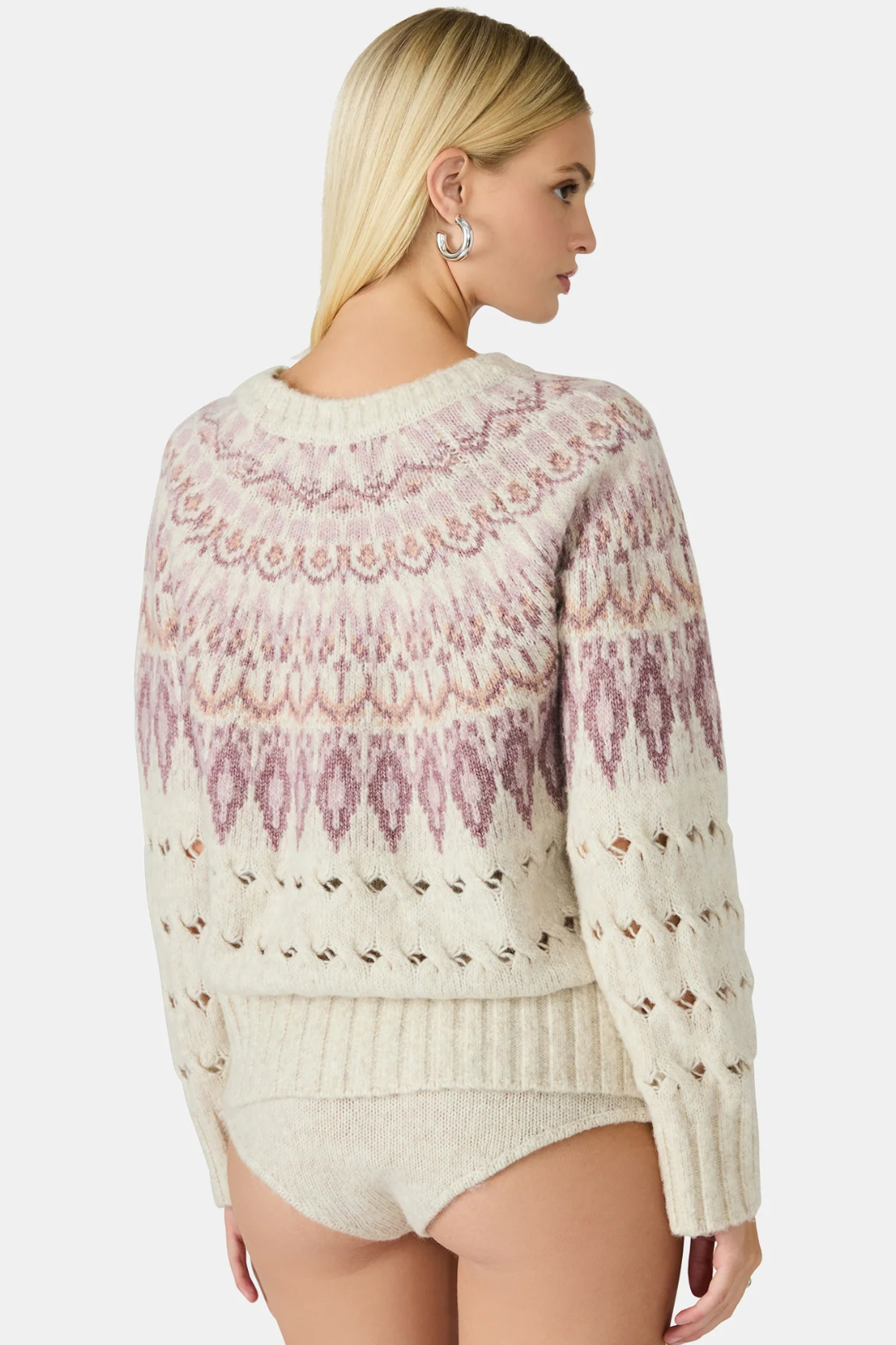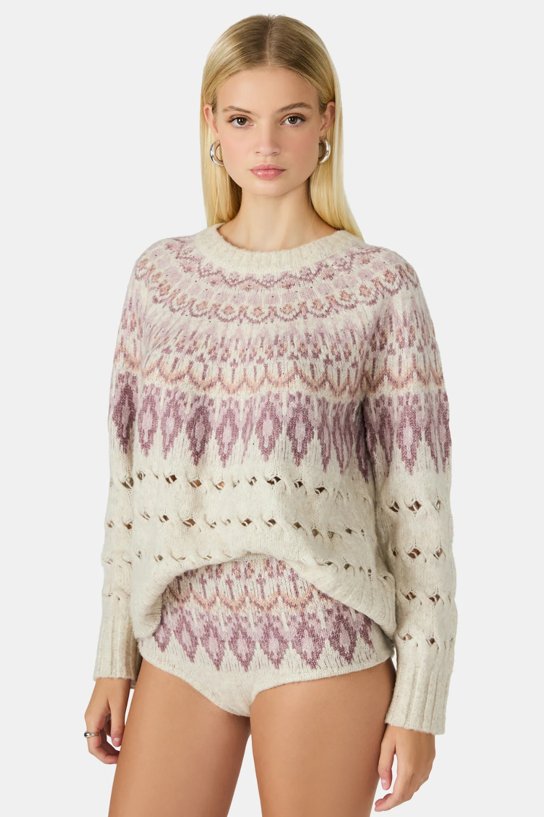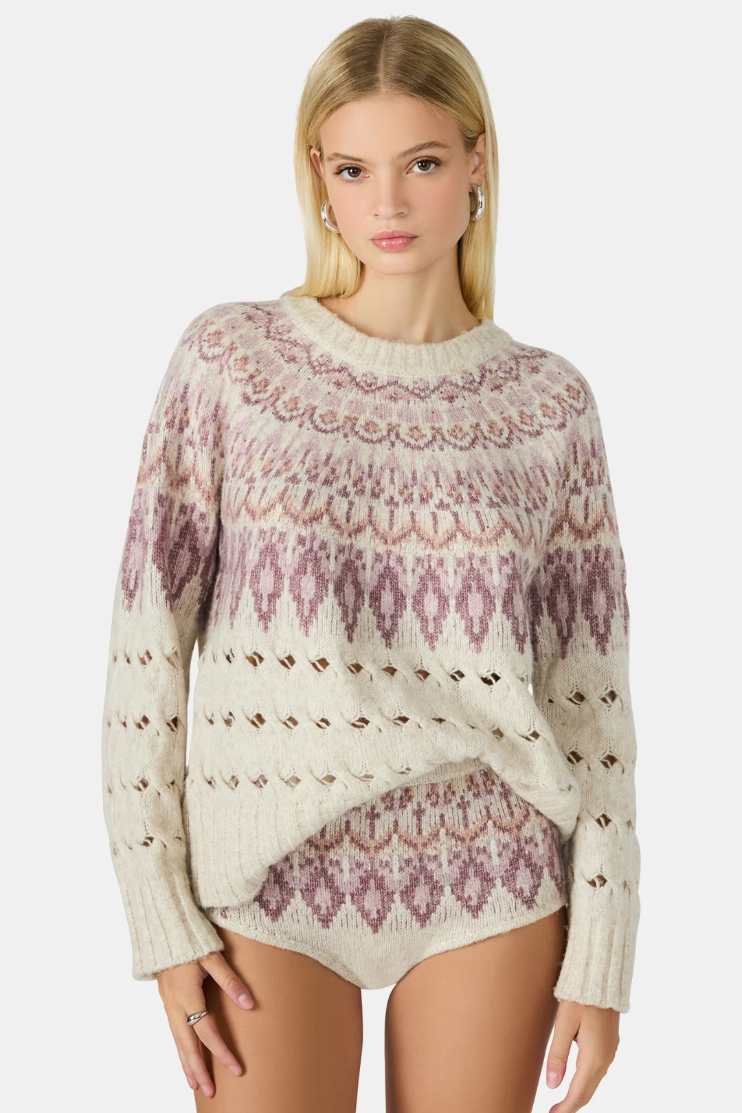 Elevate your winter look with this Suzette Sweater from Steve Madden. Featuring a Fair Isle pattern that instantly brightens your look. Soft, warm, and easy to wear, it's that feel-good knit you'll reach for all season long. Perfect for holiday gatherings, cabin weekends, chilly morning coffee runs, or anytime you want that classic winter vibe with a fun pop of color.