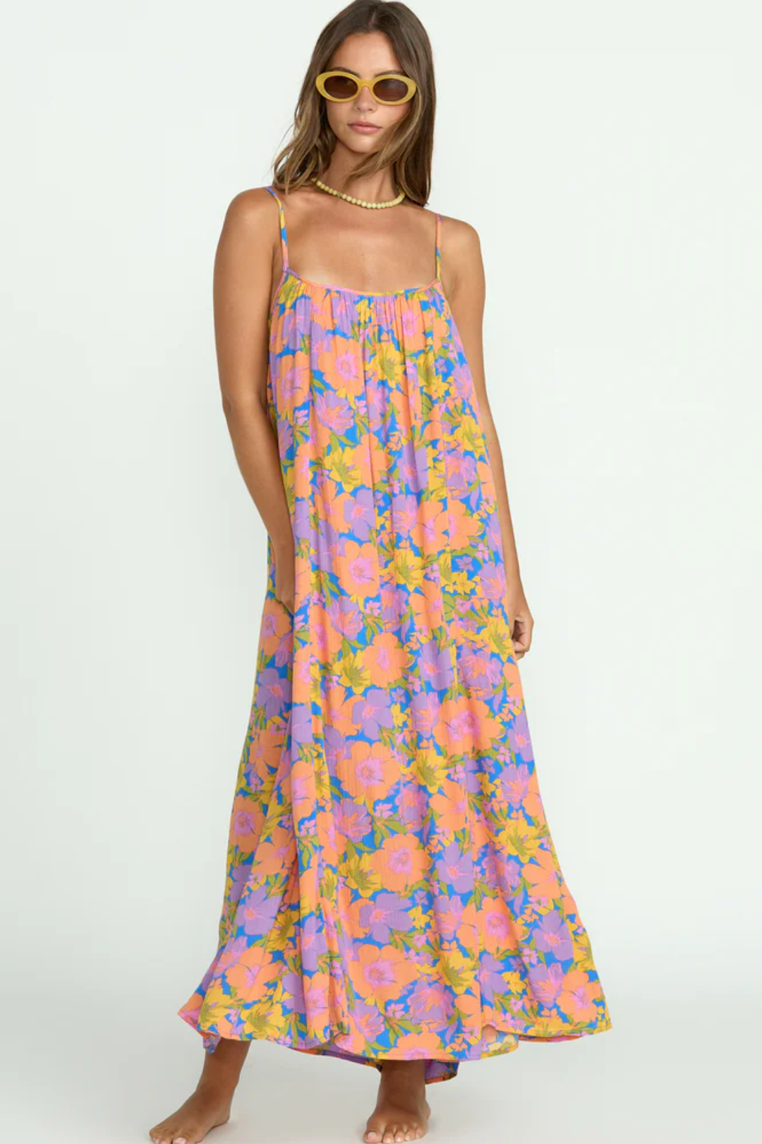 Billabong's Sandy Cove Maxi Dress is made for dreamy escapes. Crafted from breezy viscose with a crinkled texture and a floaty fit. This floral beauty floats effortlessly over sun-kissed skin, making it the perfect piece to slip on after a swim or stroll into a candlelit dinner.