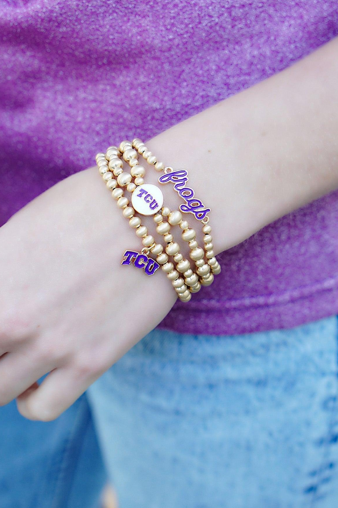 TCU Horned Frogs 2-Row Ball Bead Stretch Bracel