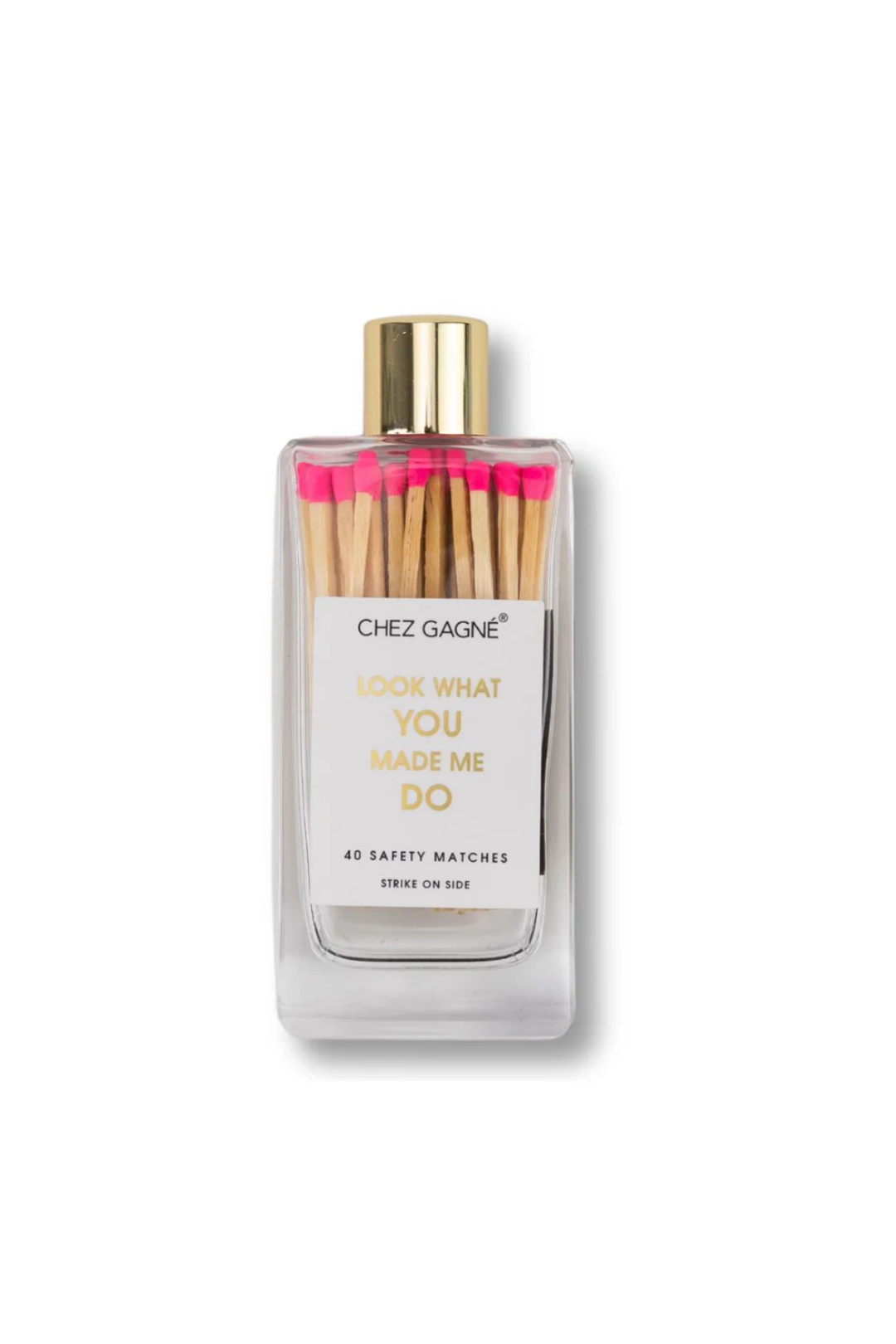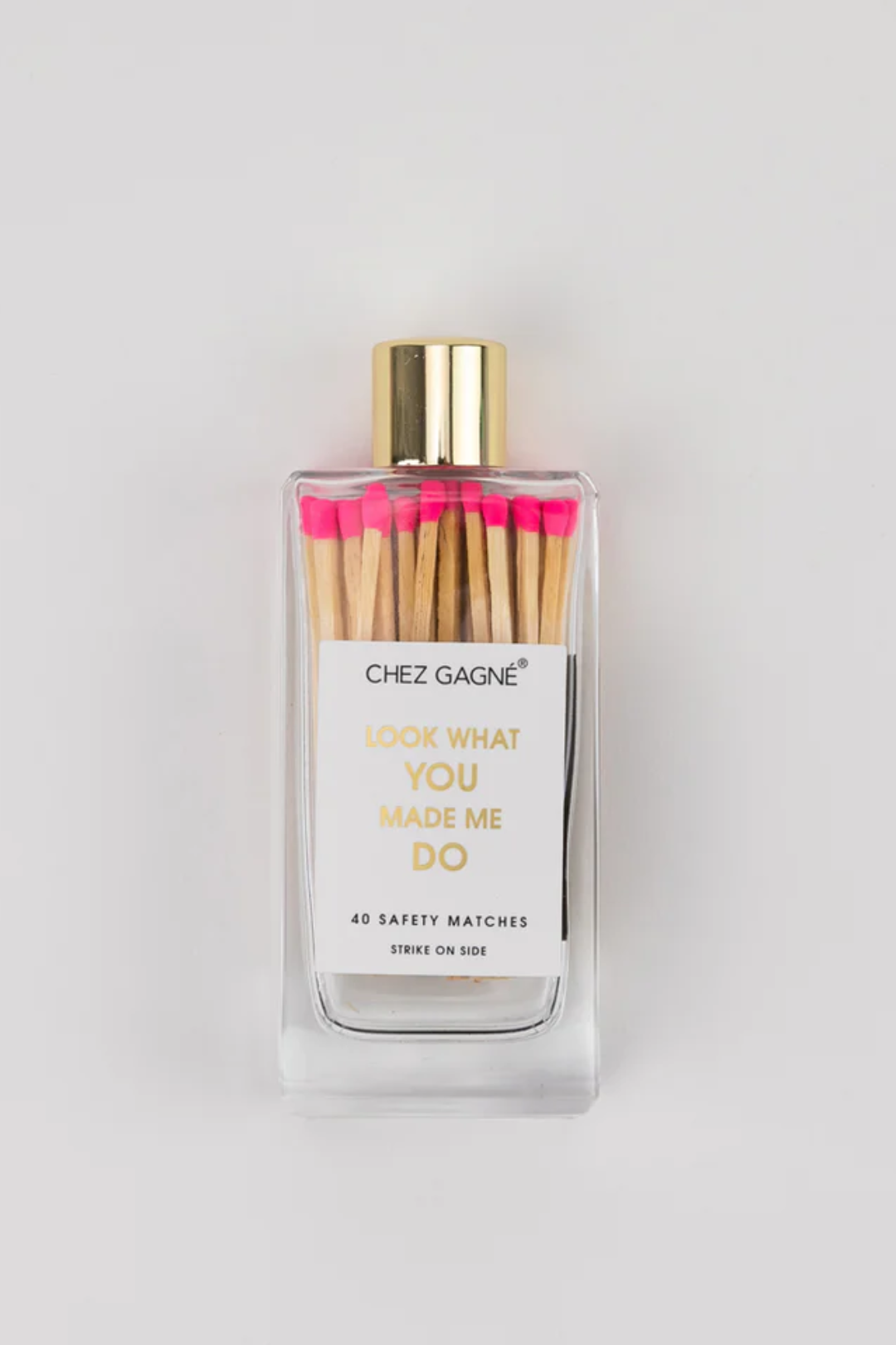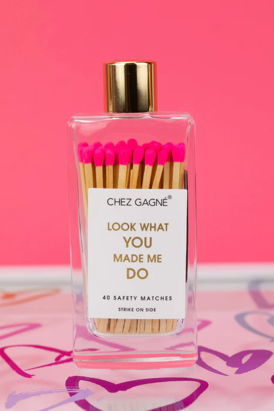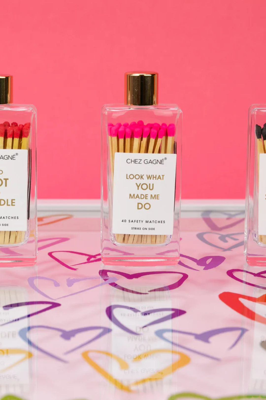 Spark a little fun drama with these bright pink-tipped and display-worthy safety matches. Look What You Made Me Do Matches are perfect for lighting candles or unleashing your full main-character energy. Sealed in a chic glass bottle with a gold lid, they instantly elevate any space. Perfect for birthdays, bachelorette surprises, or Taylor-coded celebrations.