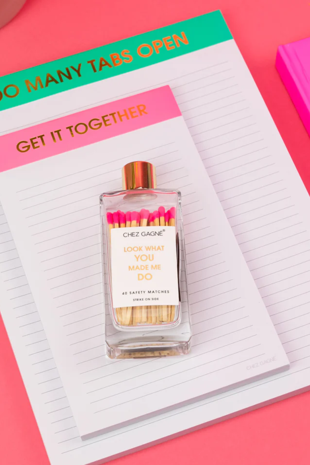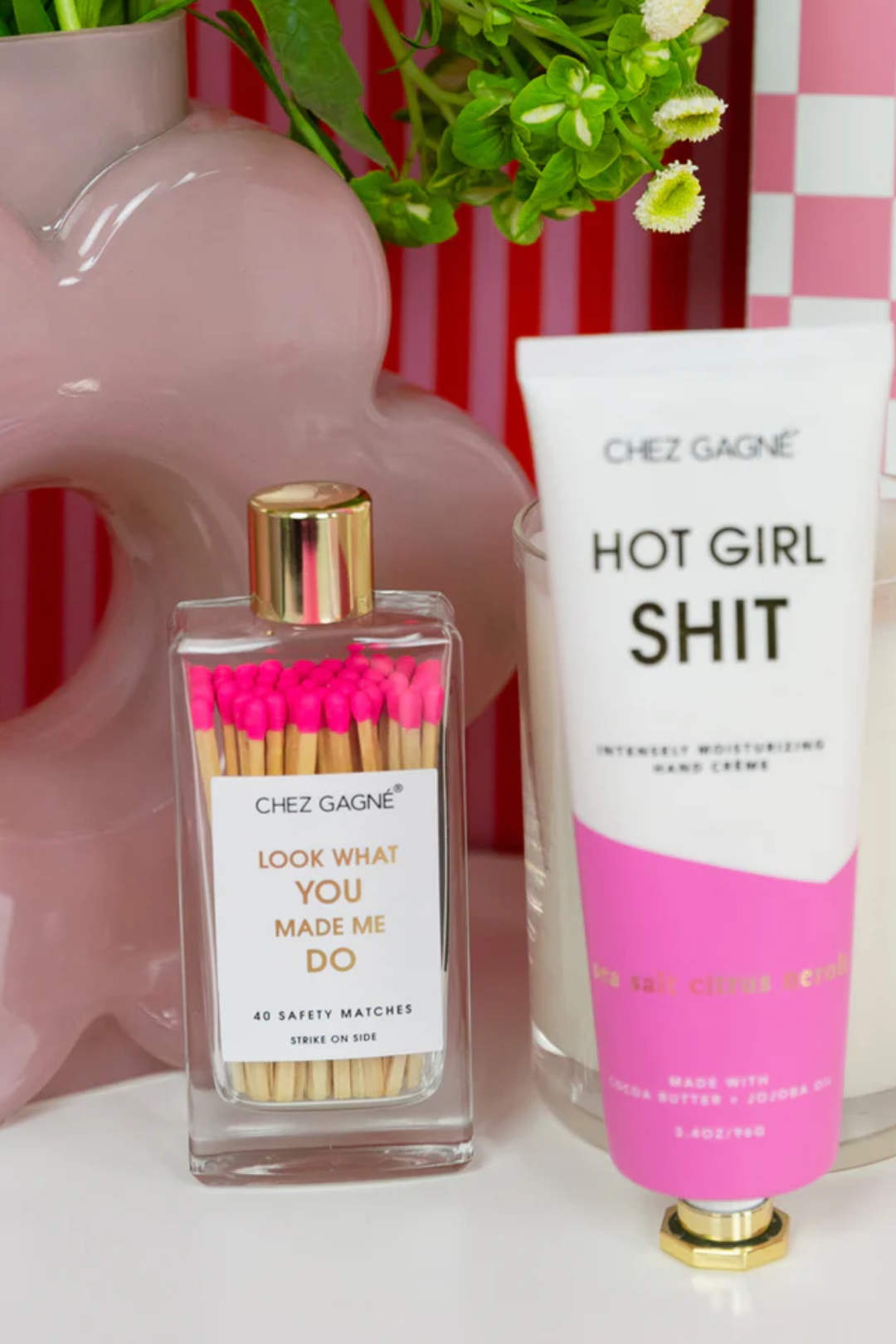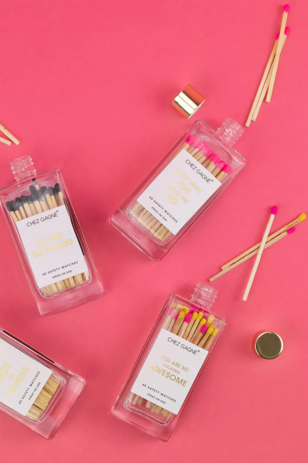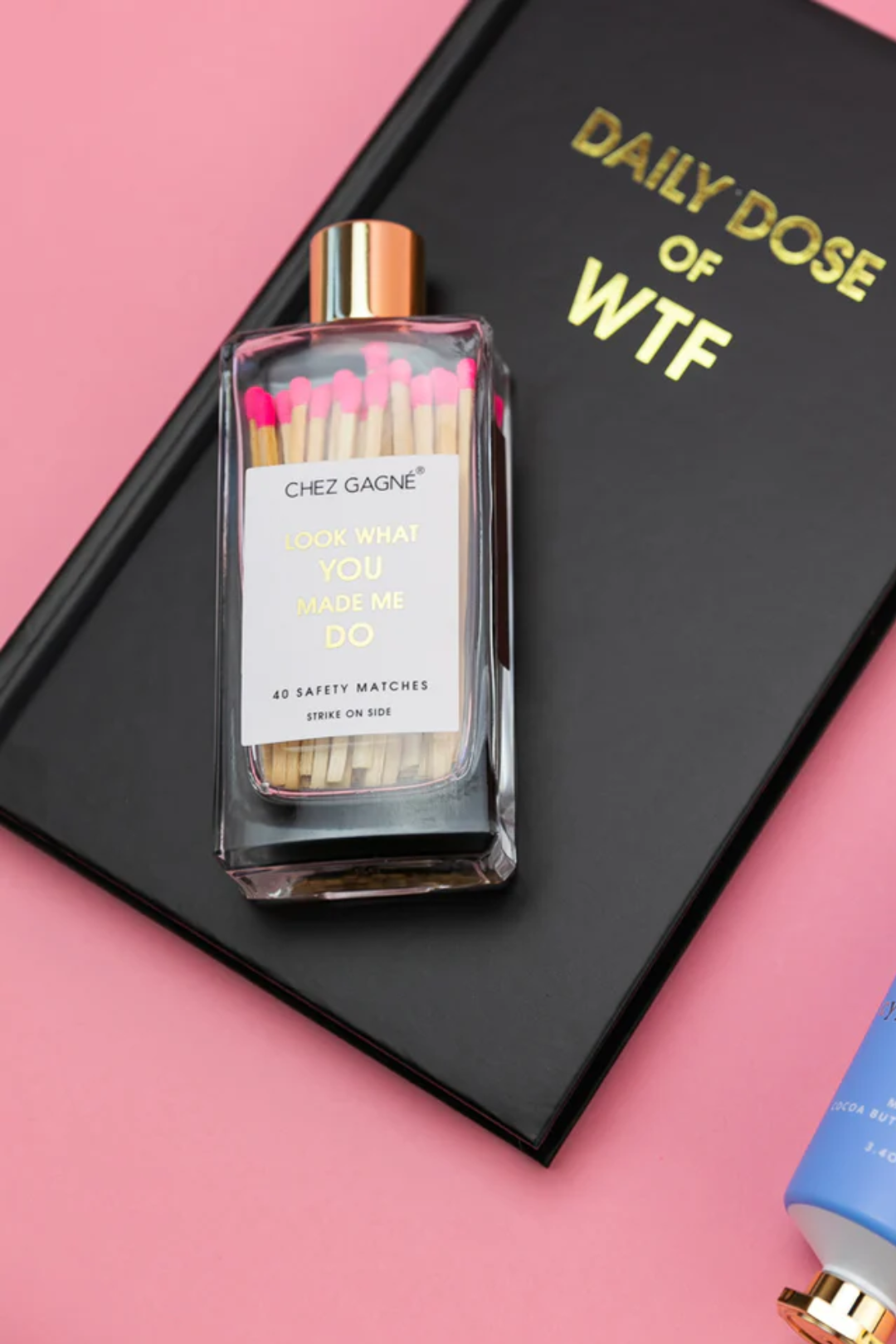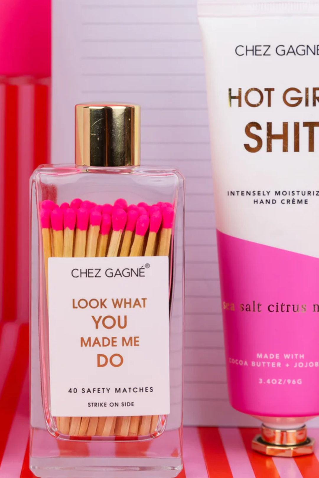 Spark a little fun drama with these bright pink-tipped and display-worthy safety matches. Look What You Made Me Do Matches are perfect for lighting candles or unleashing your full main-character energy. Sealed in a chic glass bottle with a gold lid, they instantly elevate any space. Perfect for birthdays, bachelorette surprises, or Taylor-coded celebrations.