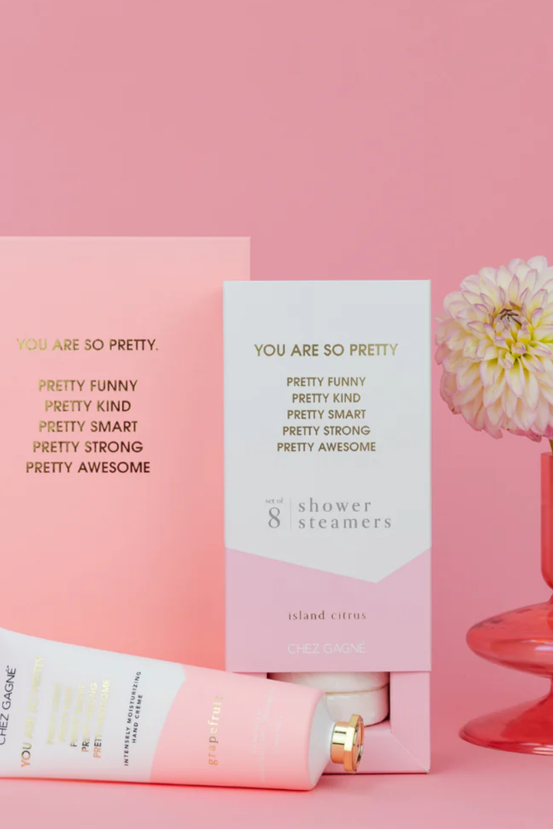 A little reminder, wrapped in self-care. These island citrus shower steamers bring feel-good vibes straight to your shower. Sweet, sunny, and lightly tropical, the scent fills the steam and instantly lifts your mood. It's part aromatherapy, part confidence boost—because you deserve both. Perfect for self-love moments, gifting your bestie, or anytime you need a reminder of how amazing you are.