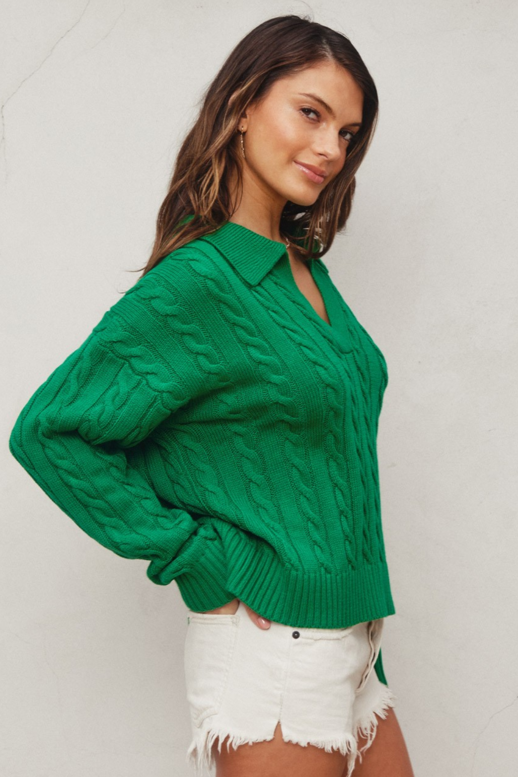 Put some seriously chic vibes to your outfit this season with this Margo Collared Sweater. It's a varsity raglan sweater with cable knit on the bodice, collared neckline, and relaxed fit. Perfect for coffee dates, vacation, or cozy evenings in.