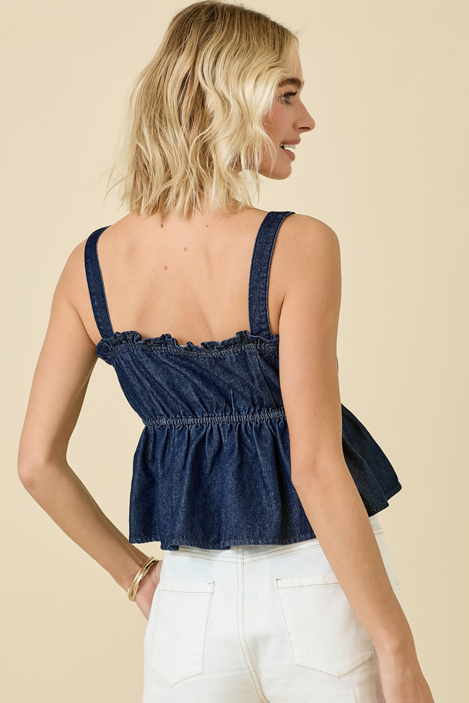 Show off your style with this cute Denim Bow Top—a must-have for spring! It's a sleeveless top with a two-bow detail at the front. Perfect for weekend getaways, casual dates, or everyday wear.