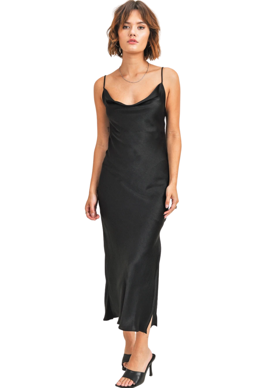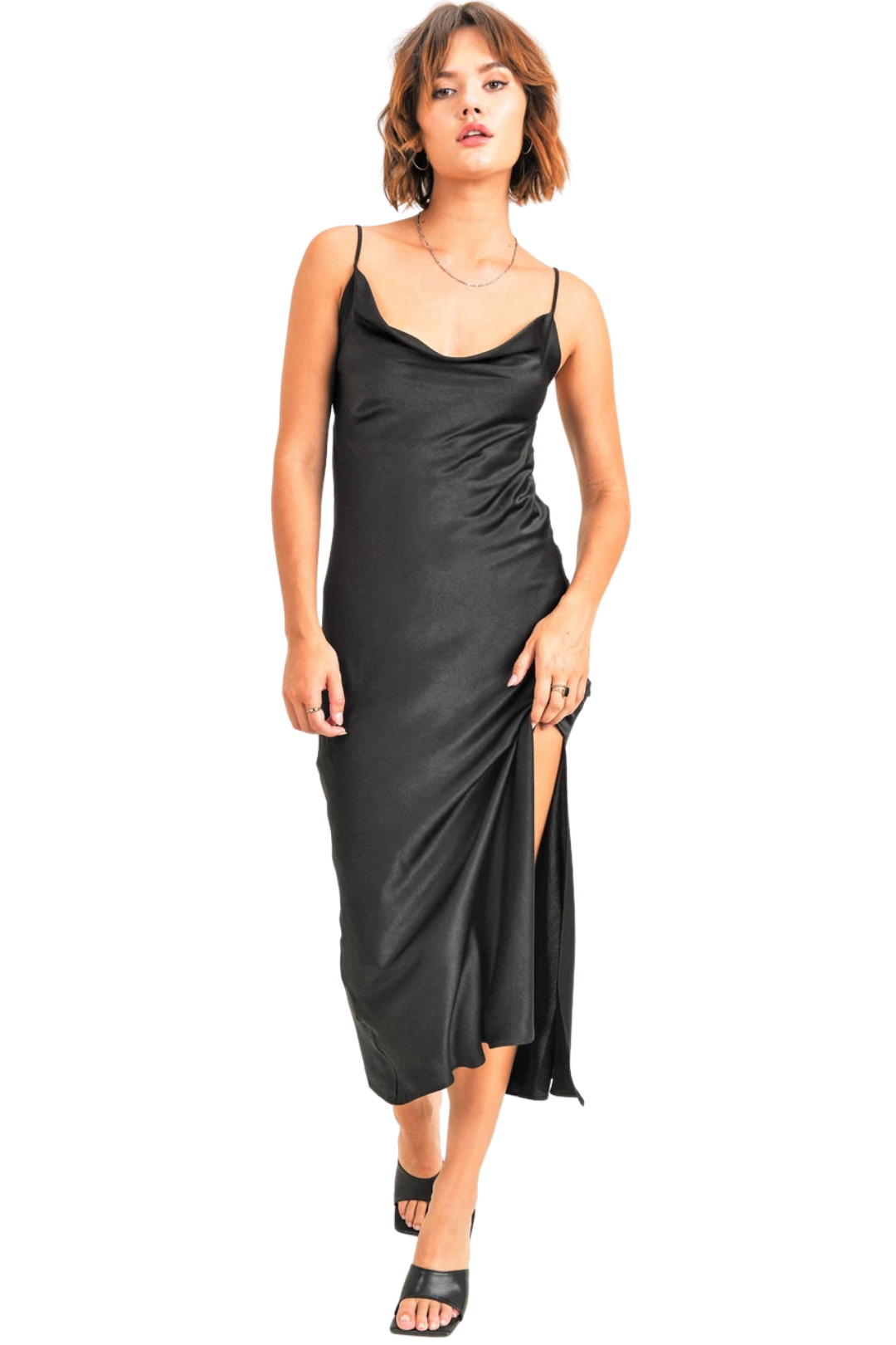 Florence Dress from Resey by Jane will give you an instant dose of elegance. With a cowl neckline, adjustable straps, and a sultry slit on the left side, this silky maxi dress is sure to turn heads. It's sassy and sophisticated, making it perfect to wear on a cocktail night out with friends.
