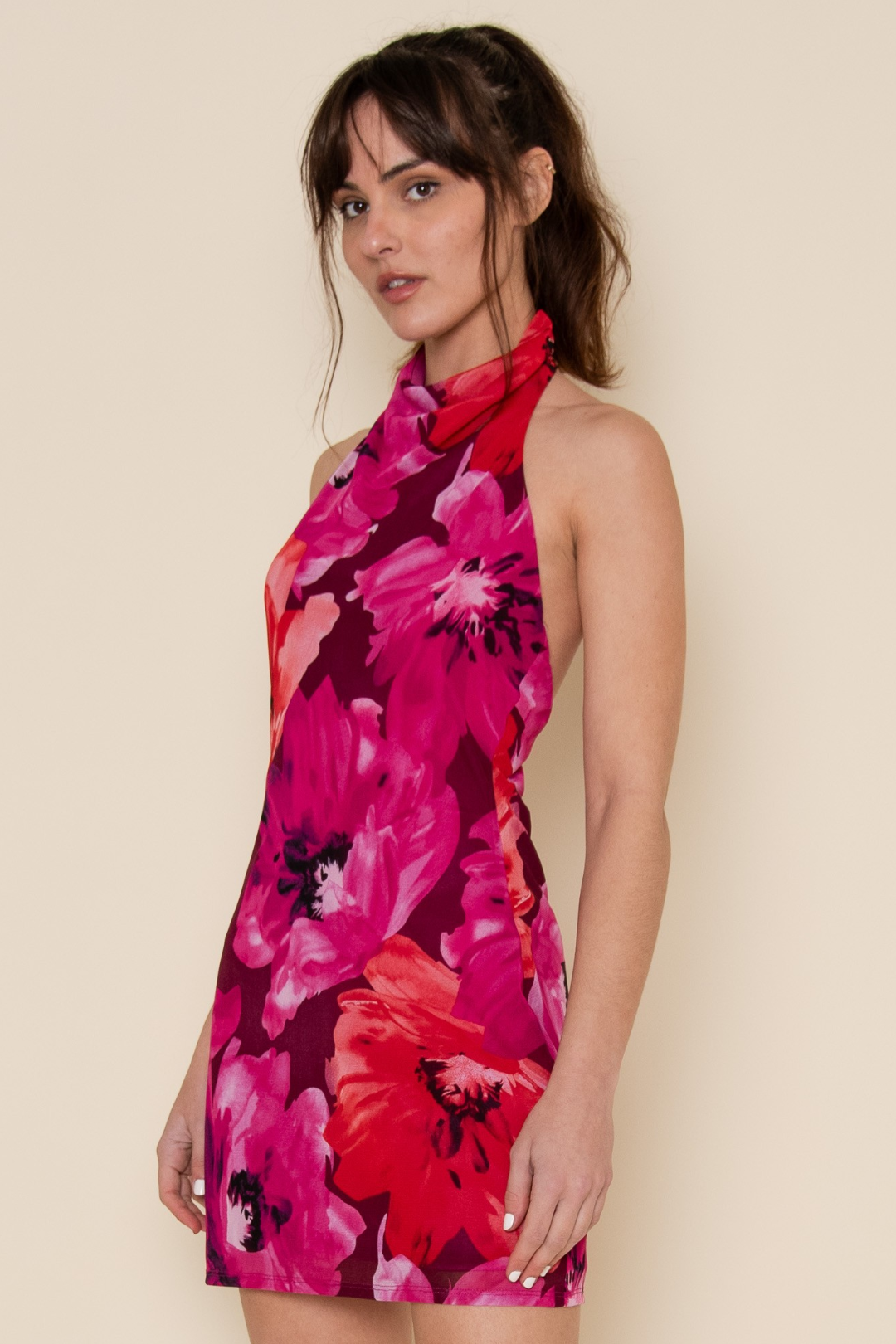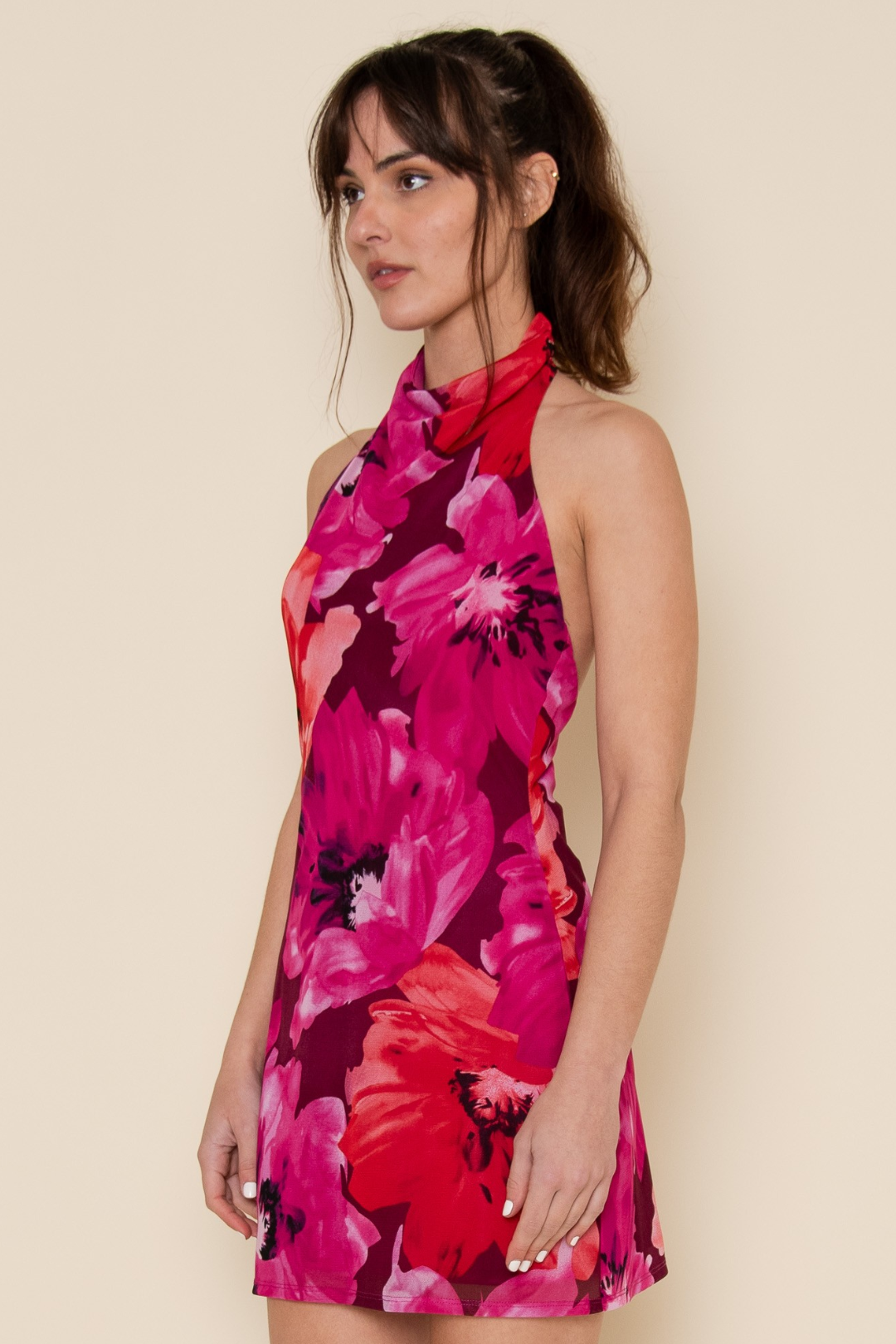 Flirty and fresh, the Charlotte Halter Dress is your go-to for sunny days that turn into late nights. With its mock halter neckline and open back, it shows just enough skin while keeping the silhouette sleek. The floral print adds a soft, romantic vibe, while the mini length keeps it playful. Perfect for garden parties, brunch dates, summer birthdays, or vacation strolls through sunny streets.