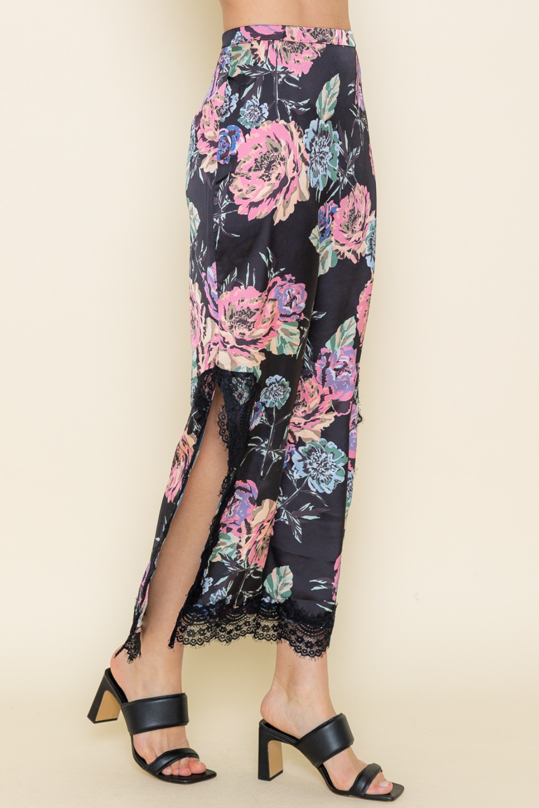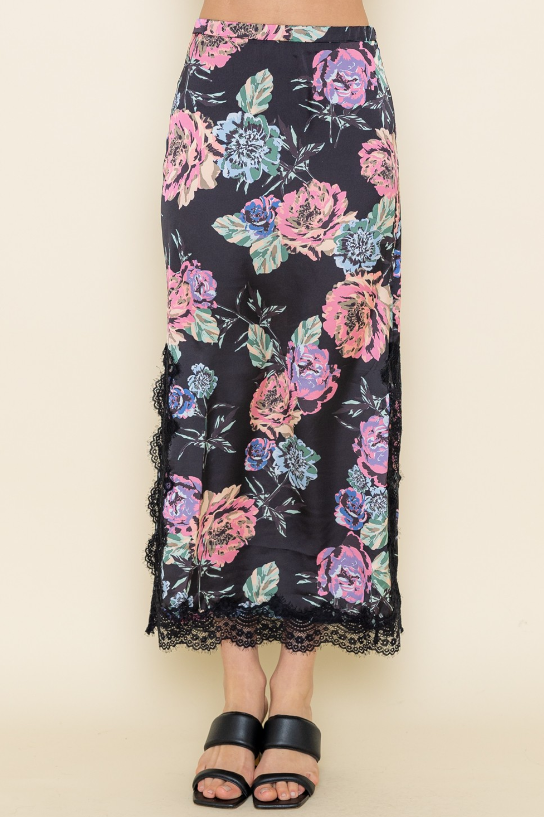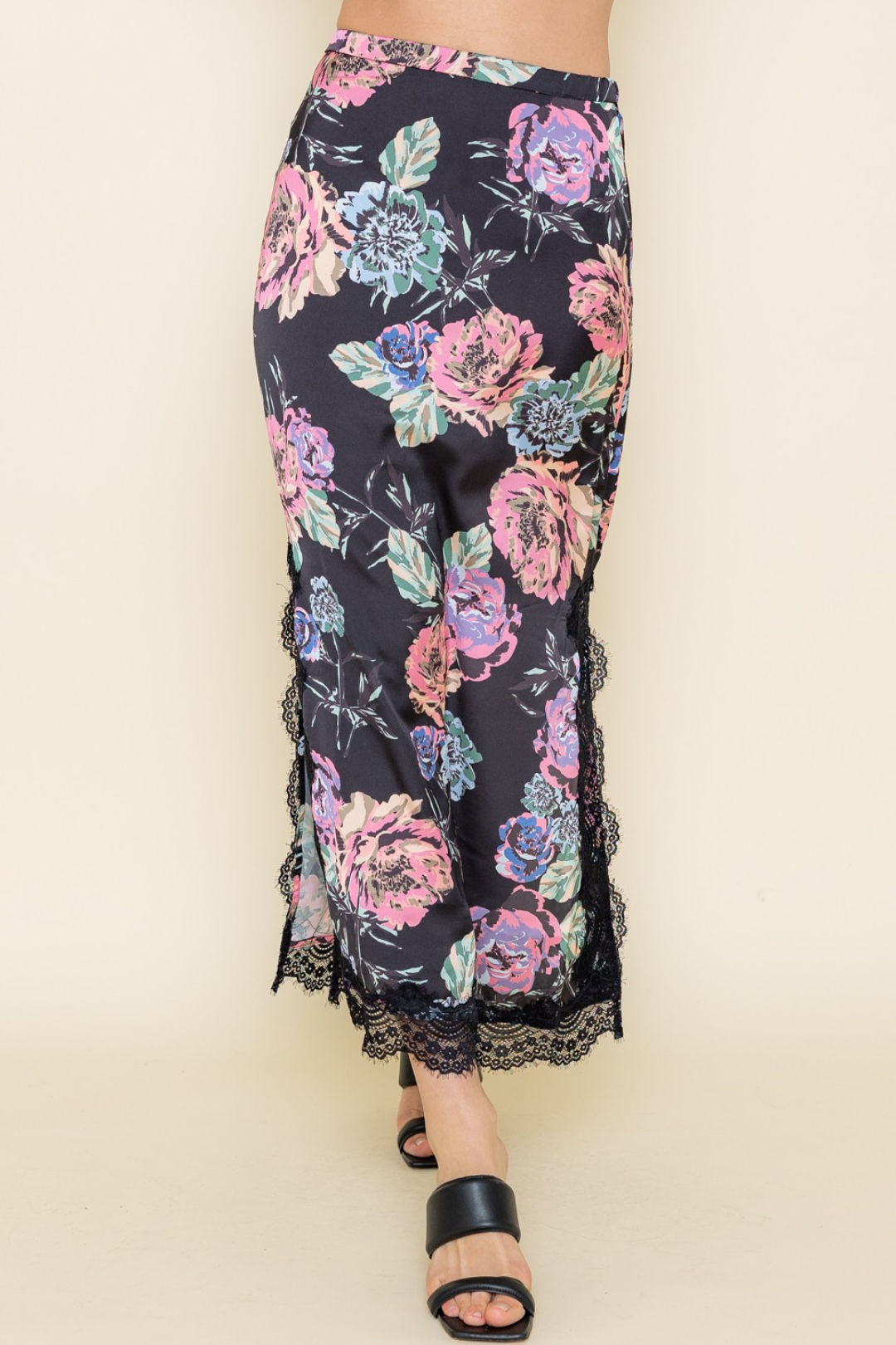 Romance meets effortless flow in the Ellie Floral Maxi Skirt. Designed with a high waist and colorblock floral print, this piece brings soft femininity with a touch of vintage allure. The delicate lace trim, sleek side zipper, and subtle side splits create a silhouette that's both timeless and modern. Perfect for brunch, cafe mornings, weekend getaways, or golden hours.
