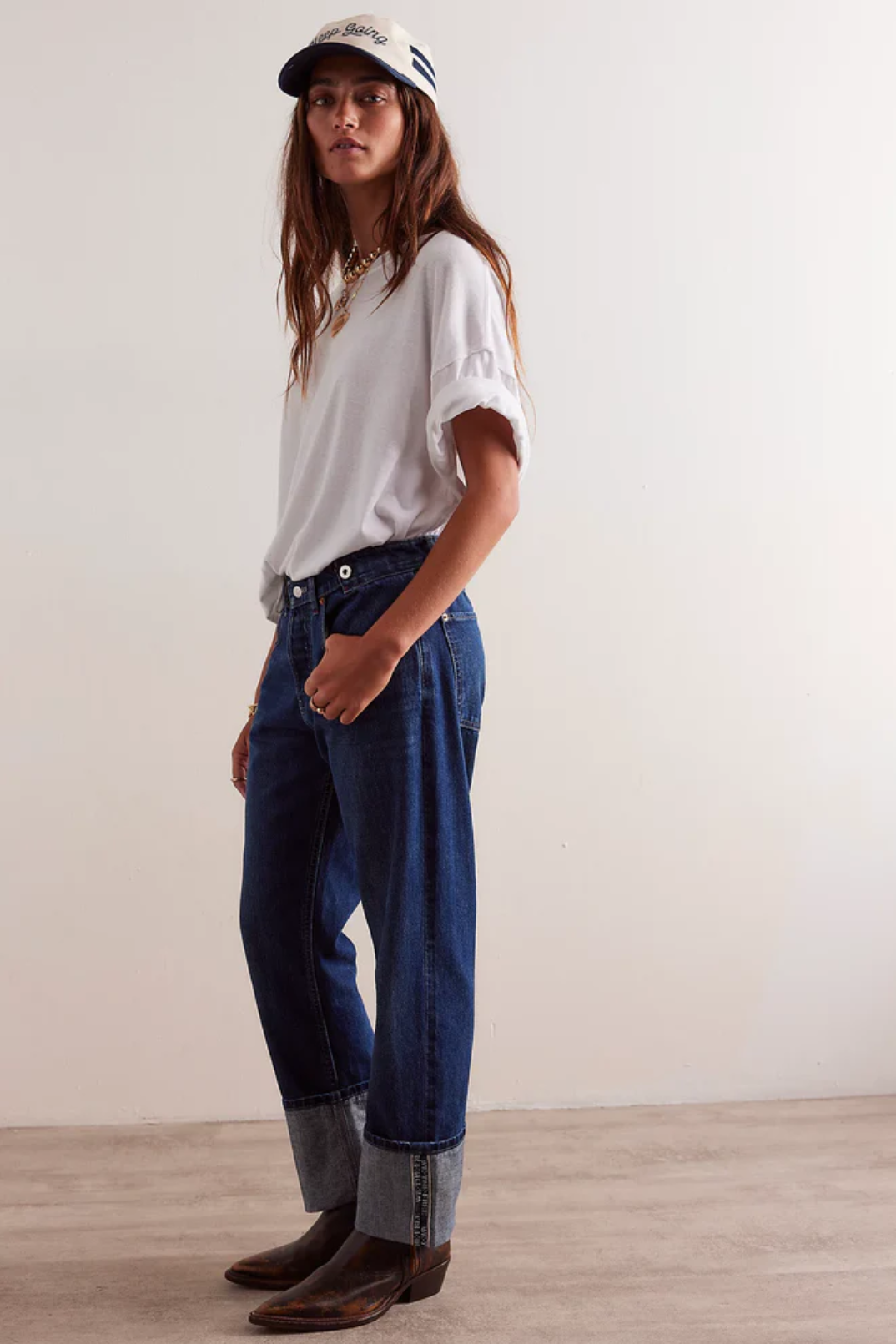 The Slim Shade Jean in True Blue from Free People is the jean you didn't know your closet was missing. Crafted from soft, rigid denim in a classic true blue wash that feels vintage but wears modern. The standout? An exaggerated cuffed hemline that adds structure, style, and just the right touch of edge. Effortlessly cool with a bold finish. Perfect for casual outfits that feel styled, statement denim moments, day-to-night dressing, and elevating your everyday essentials.