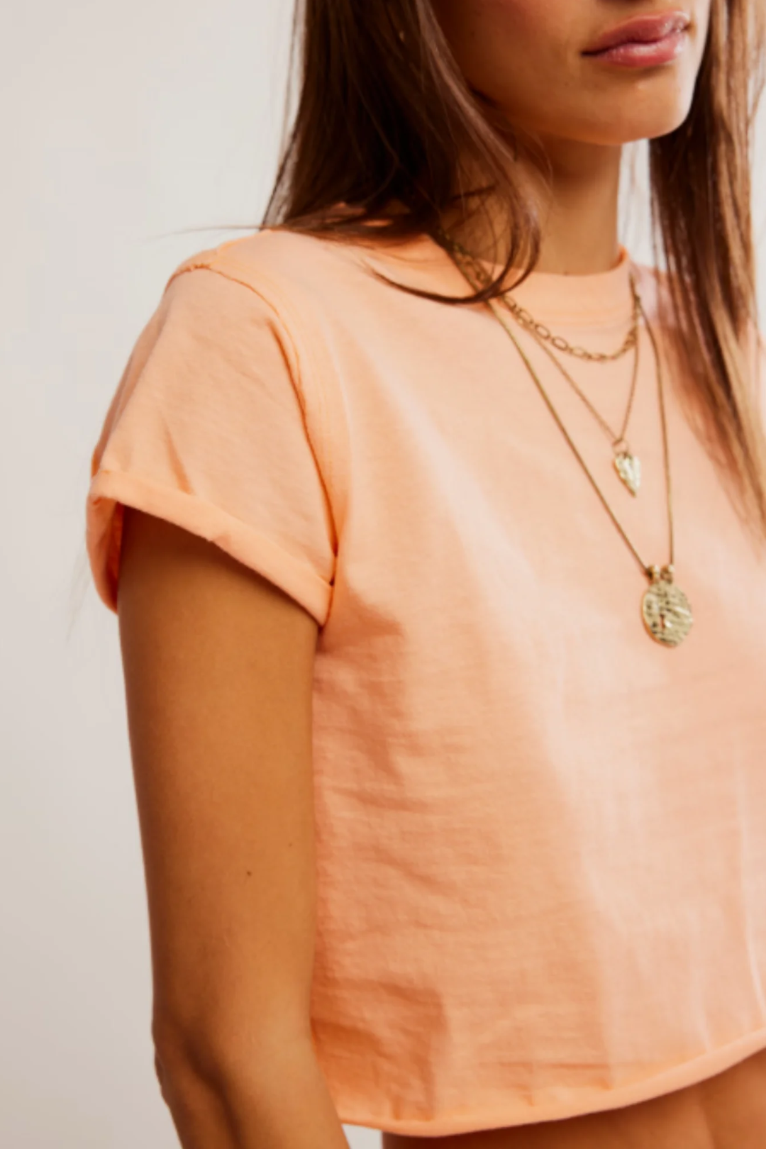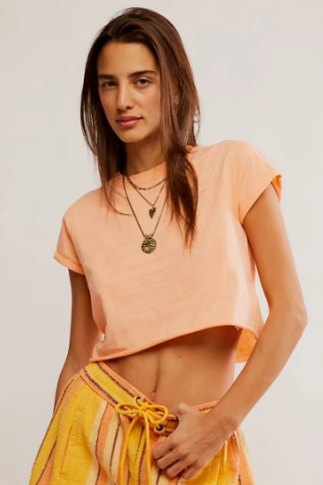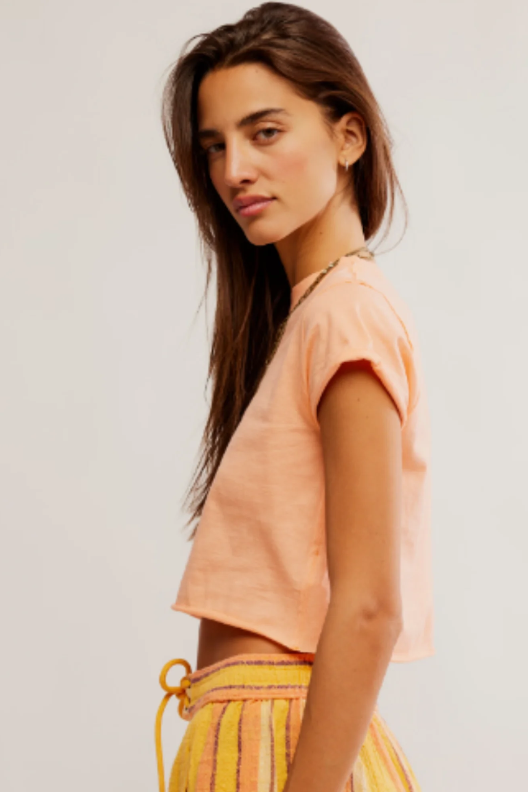 Great classics don't need an argument because we already found them! Free People's Perfect Tee will keep you cool and comfortable all day long. It's a cropped tee with a crew neckline and short sleeves. This will become your new go-to wardrobe staple wherever you go.