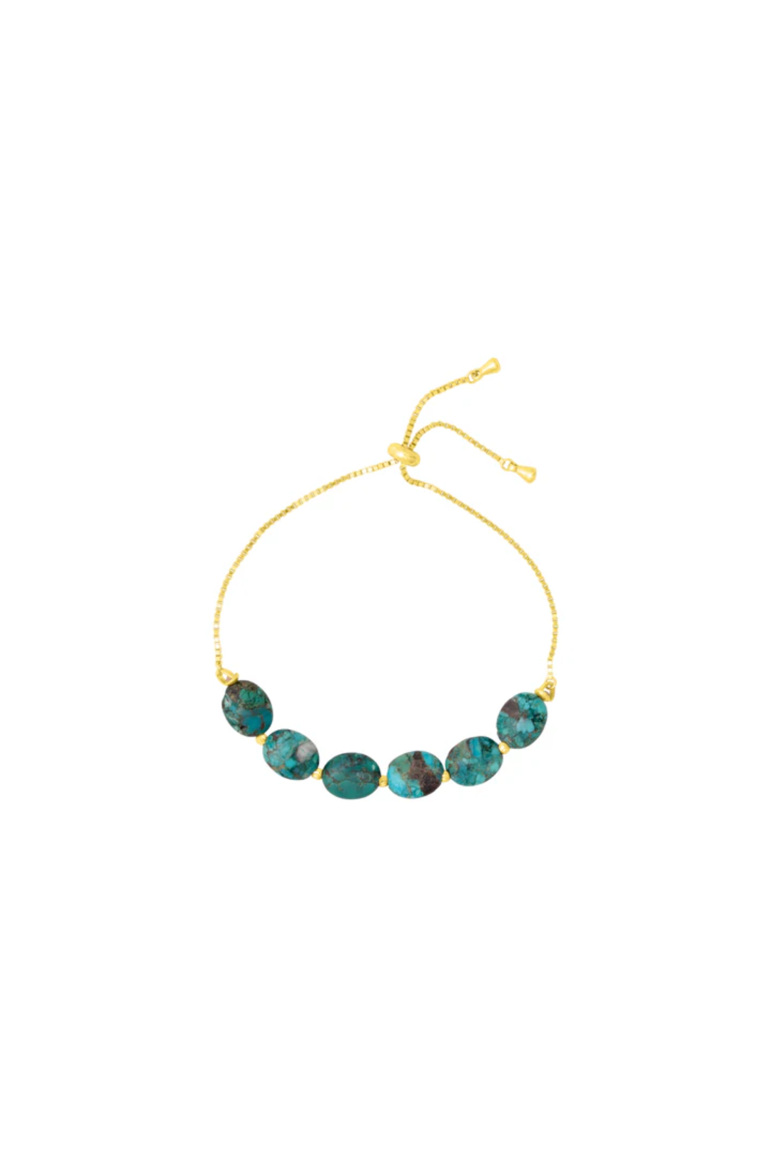 - Handmade 18k gold plated sterling silver adjustable pull tie chain with a row of turquoise