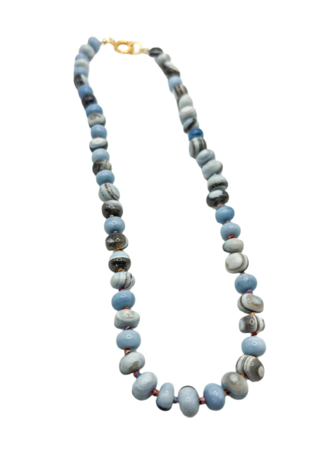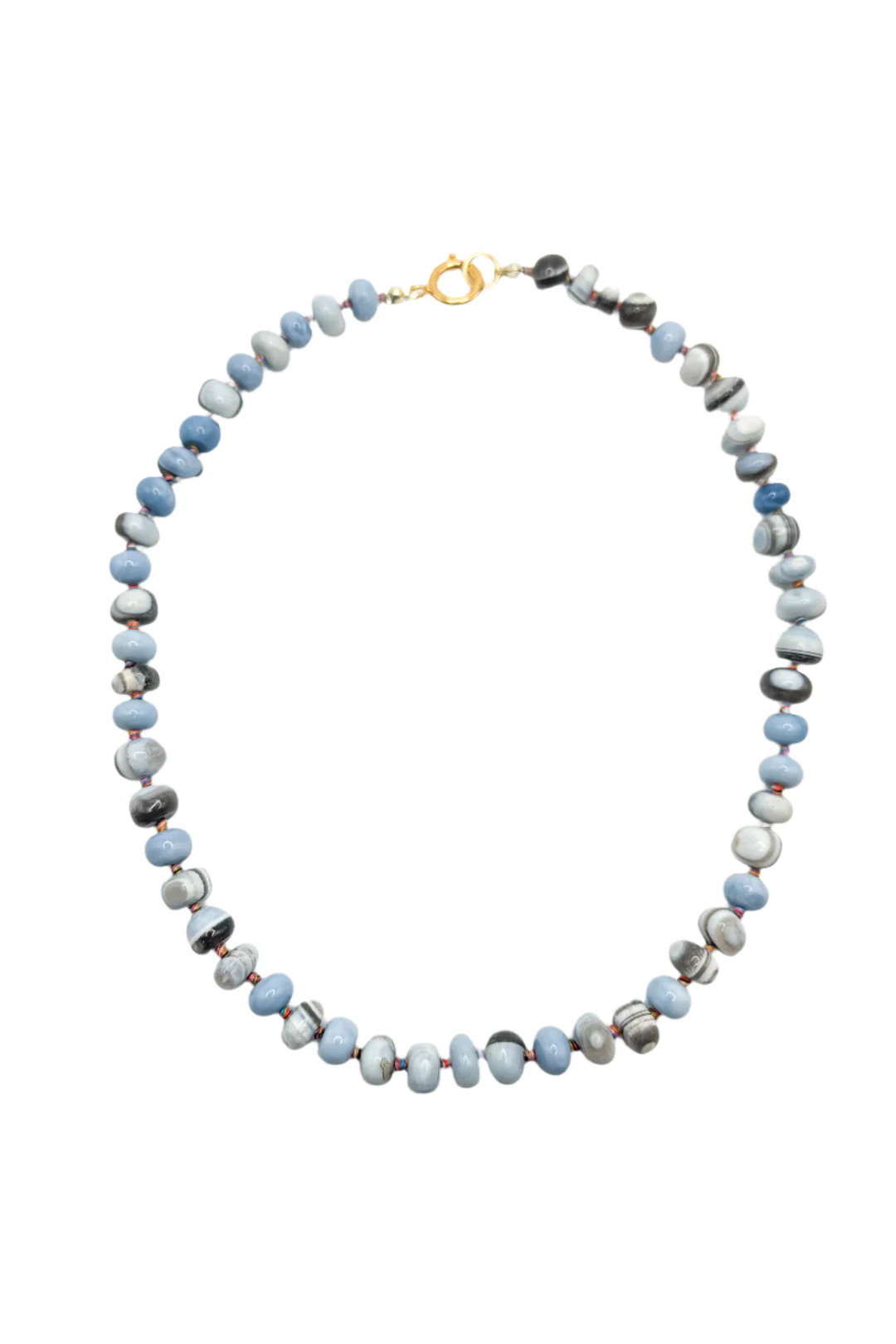 - Hand-knotted necklace made with 8mm rondelle-style dyed opals.