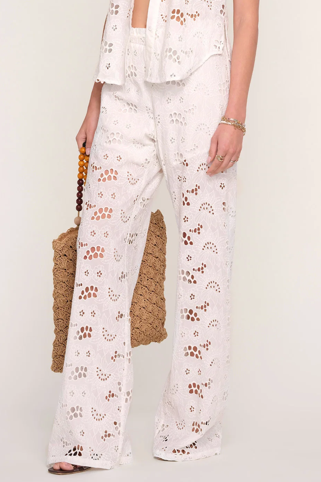 Stay stylish and comfortable all summer long in the Heartloom's Rosie Pants. Crafted from eyelet fabric, it has an elastic waist and a straight-leg cut that creates a flattering silhouette for any body type. Whether you're strolling through a garden party or lounging by the beach, this piece is a must-have.