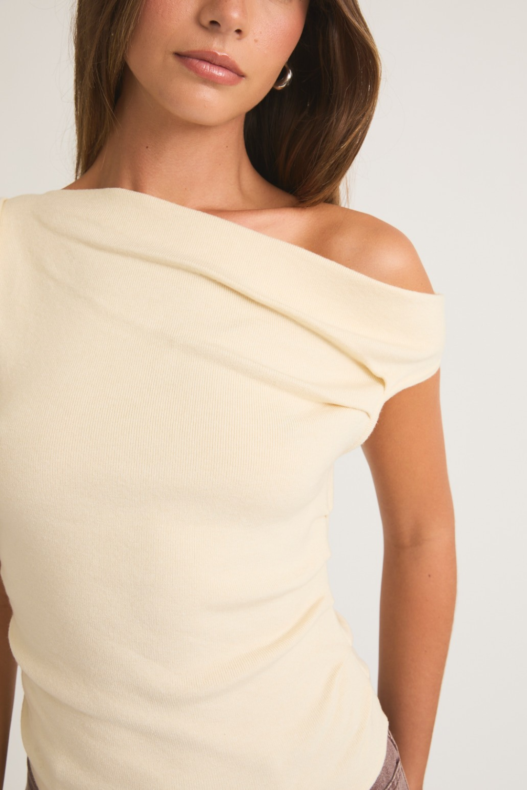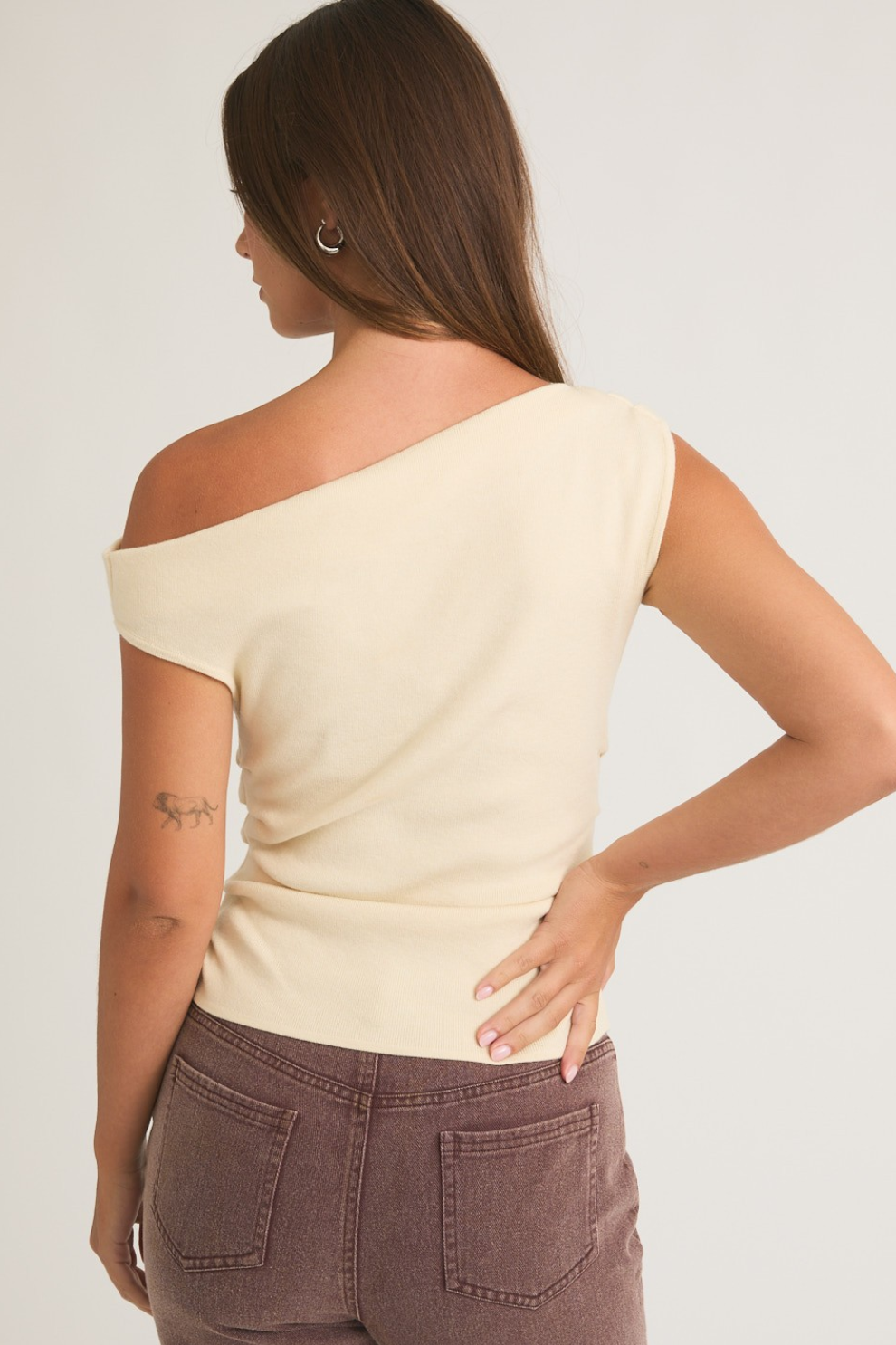 This Asym Sweater is a refined twist on the classic knit top. Crafted in a soft knit that drapes beautifully, it features an asymmetrical neckline that can be styled slightly off one shoulder for a subtly alluring silhouette. Perfect for brunch, coffee dates, casual date nights, or nights out with the girls.