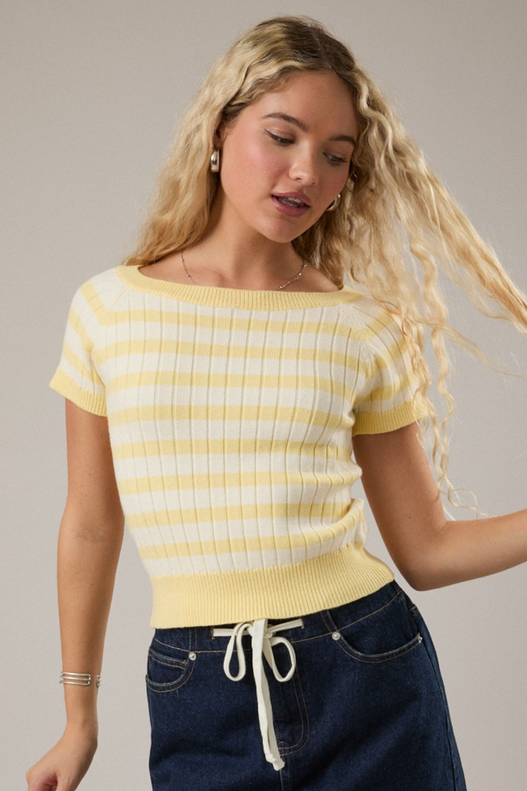 This Butter Stripe Sweater feels soft and cool, crafted from a comfy blend that hugs your vibe all day. Its classic stripe pattern gives you that modern and playful style that pops on any street. Perfect for chill brunch hangs, summer music festivals, or everyday outings.