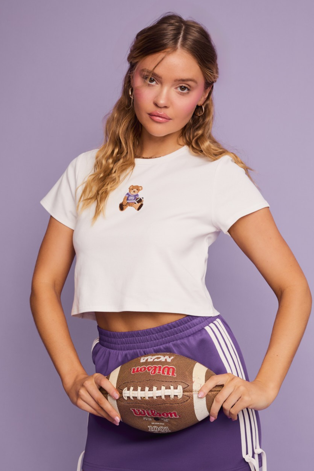 Channel that game-day vibe in this sporty and cute Teddy Football Tee. A round neckline and short sleeves keep it classic, while the embroidered teddy bear adds a playful twist that's hard not to smile at. Perfect to wear for game-day hangs, casual Fridays, coffee runs, or simply errands.