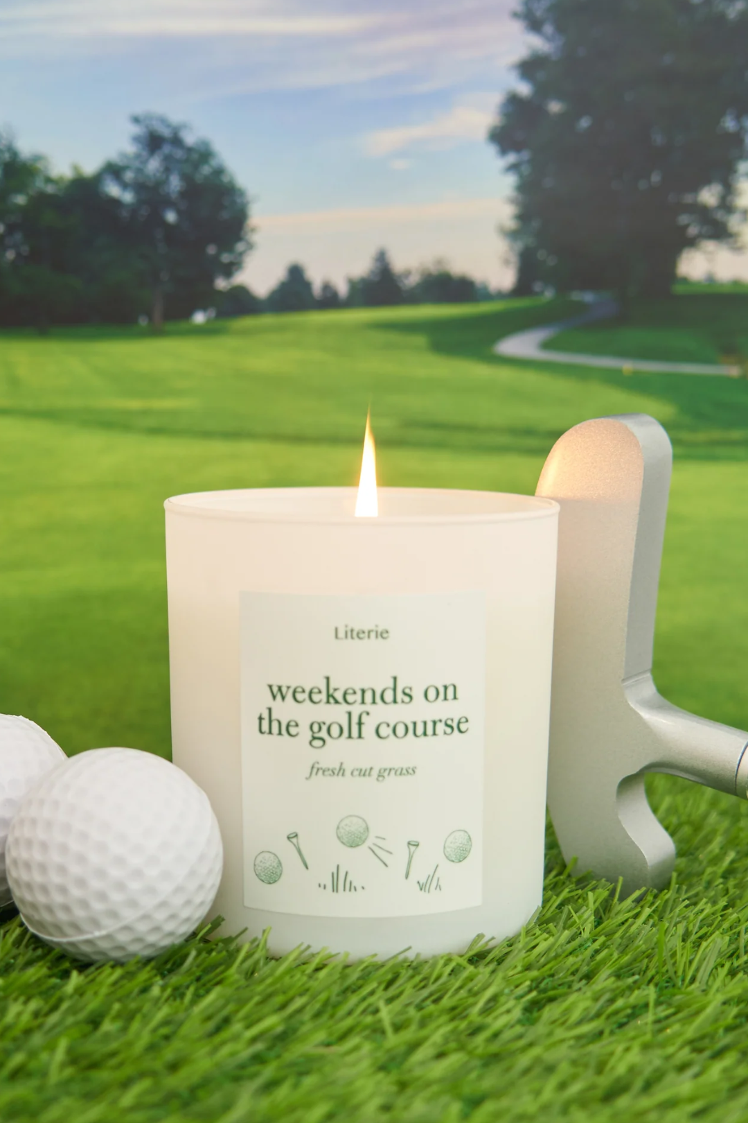 The Weekends on the Golf Course Candle smells like weekend mornings, smooth drives, and a good walk. This candle captures the unmistakable scent of freshly cut grass that brings the calm, green escape of the course to any space. Perfect for offices, dens, or any space that could use a breath of open air.