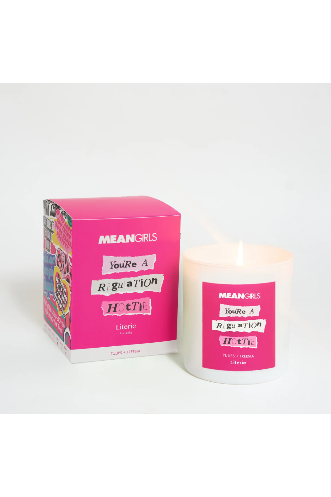 Mean Girls You're a Regulation Hottie Candle is the perfect scent for main-character moments! It has a fresh, floral blend of blooming tulips and soft freesia; this scent is bursting with sweetness and confidence. Sit with us and enjoy this pleasant aroma!
