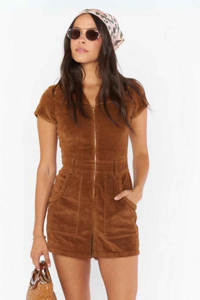 Get ready for the newest outfit that will keep you stylish throughout the year! This Outlaw Romper from Show Me Your Mumu has a collared neckline with a front zipper, two big cargo pockets, and a fitted waist. This piece is something you should bring on any future travels with your friends!