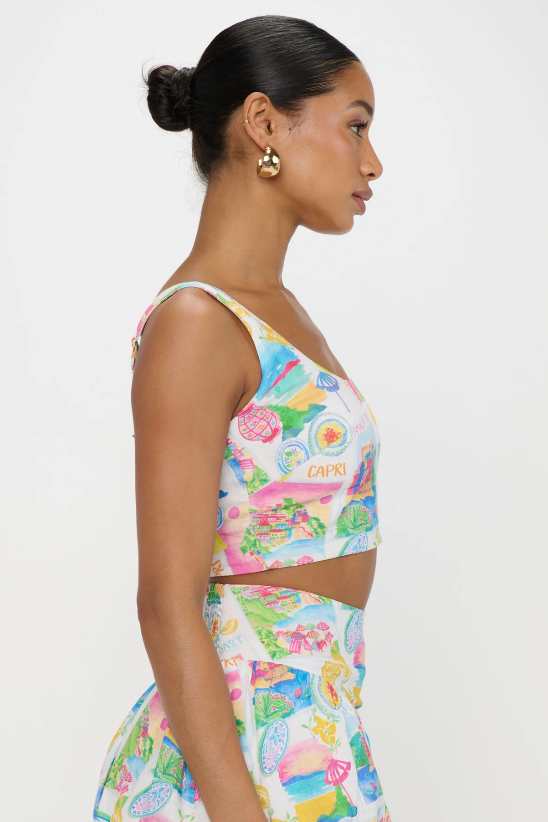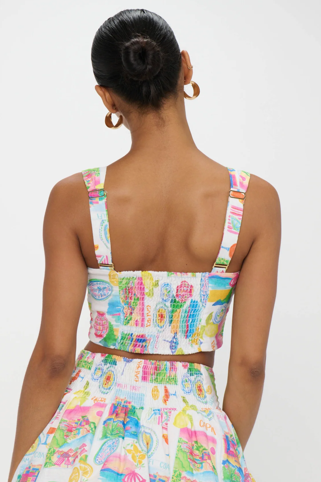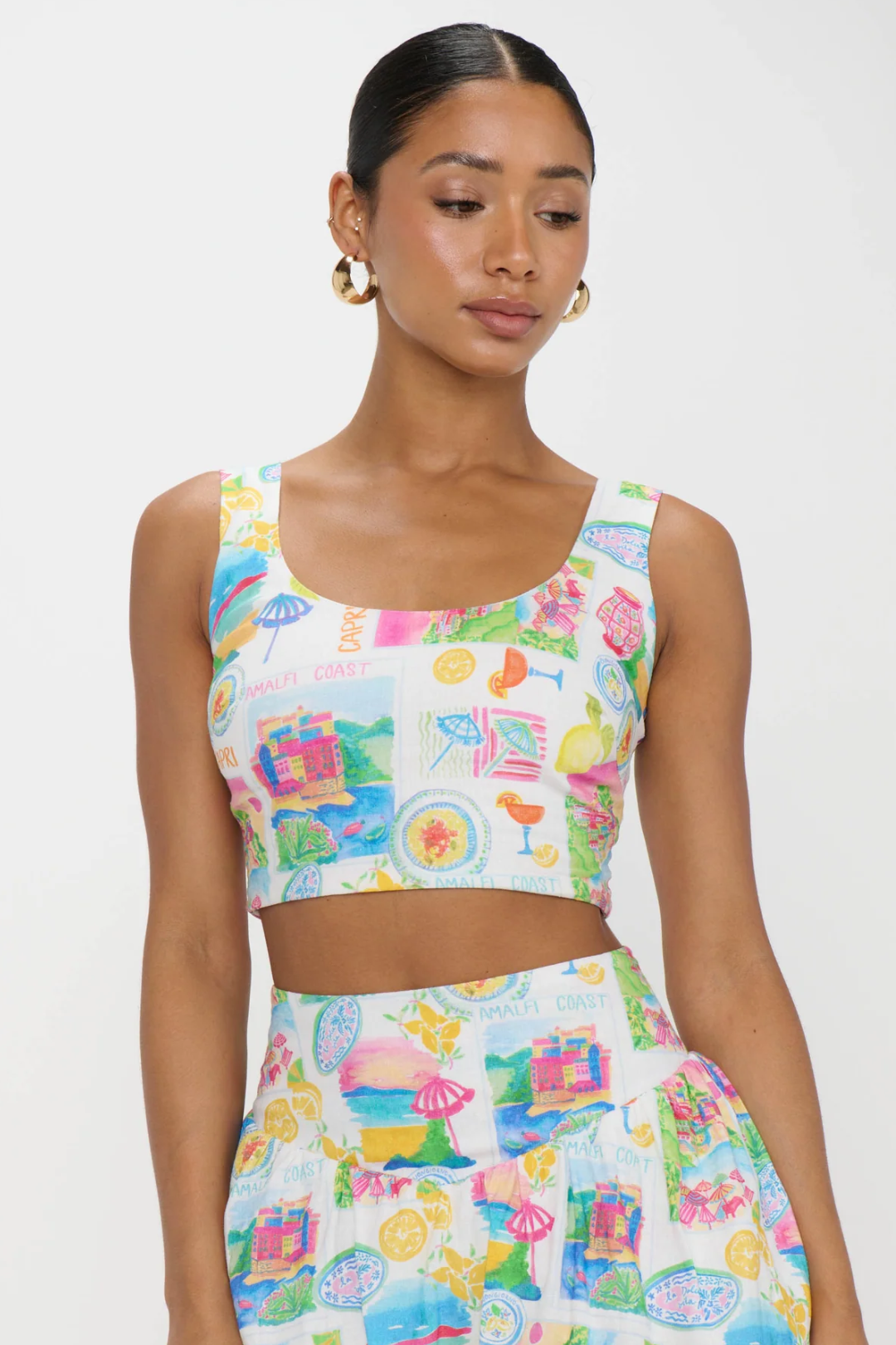 Channel coastal elegance with Show Me Your Mumu's Vivianna Amalfi Top — a lightweight essential made for sunshine and slow afternoons. This cropped piece has a graceful scoop neckline and thick adjustable straps that blend structure with ease. Whether wandering seaside towns or sipping spritzes al fresco, it's the effortless top you'll reach for on repeat.