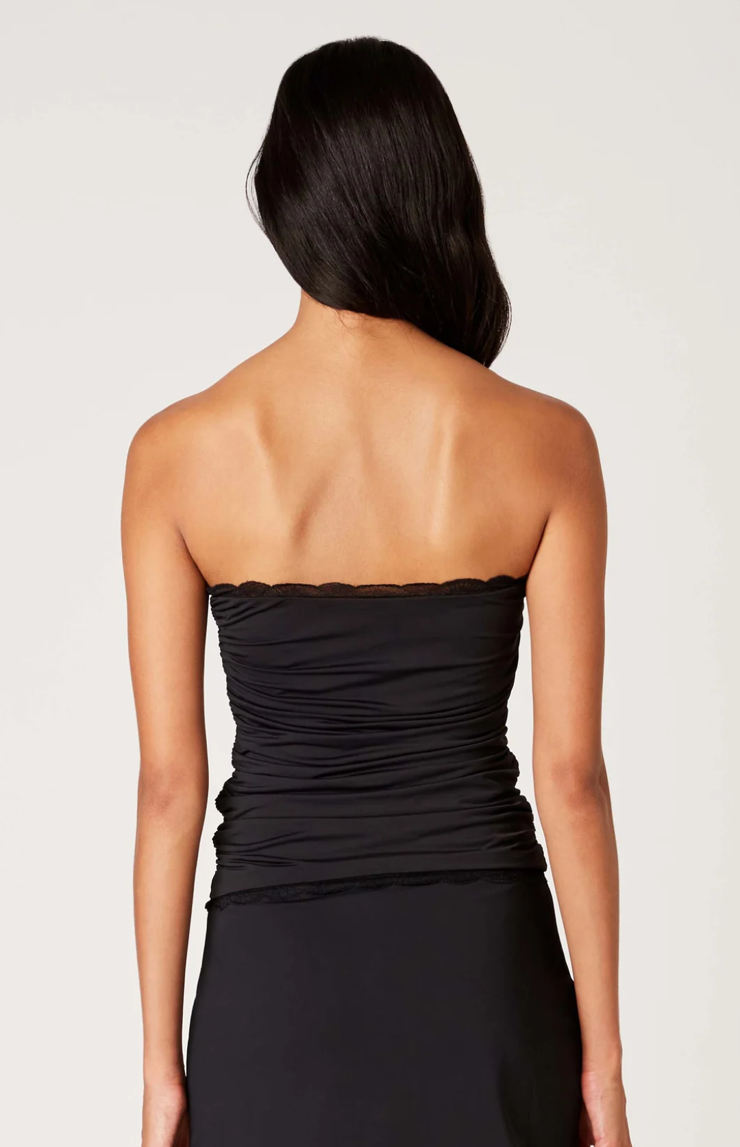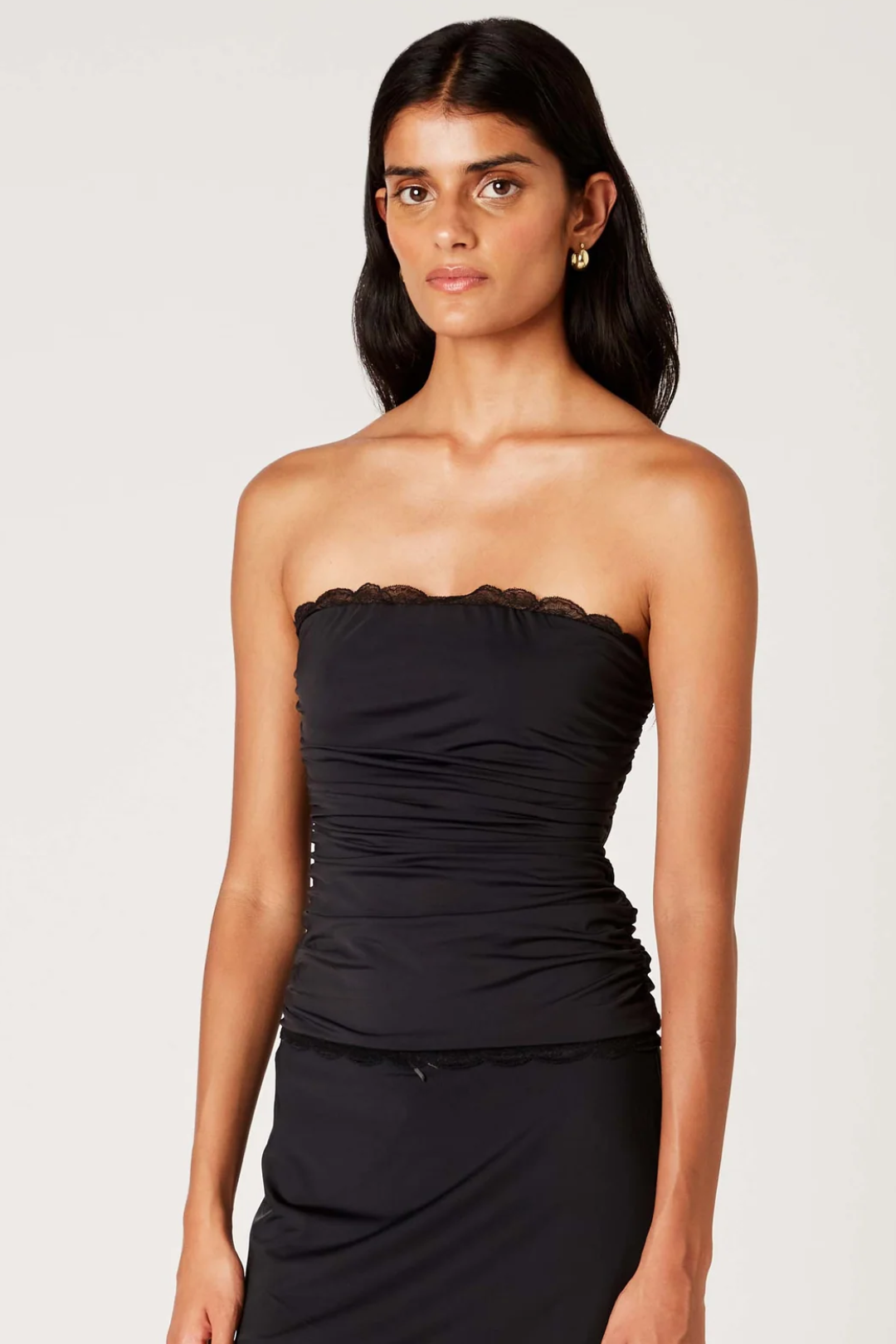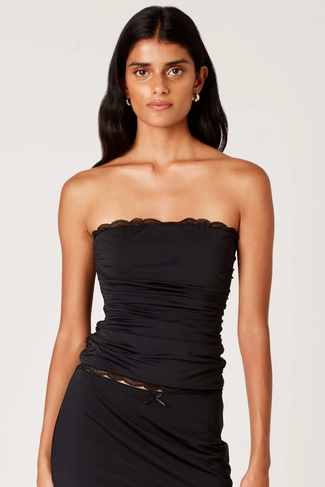 Get ready to show off your curves in the flirtatious Andrea Top by NIA. Crafted from a soft, buttery knit fabric with a scalloped lace trim and form-fitting silhouette. Perfect for cocktail parties, date nights, and bridal events.