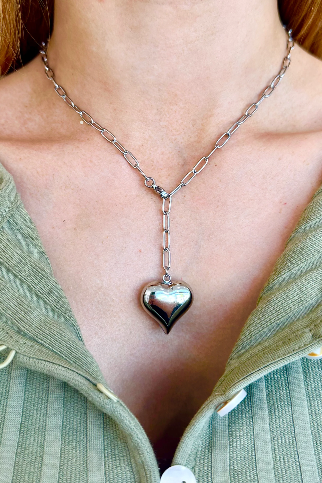 Bubble Silver Heart Chain Necklace