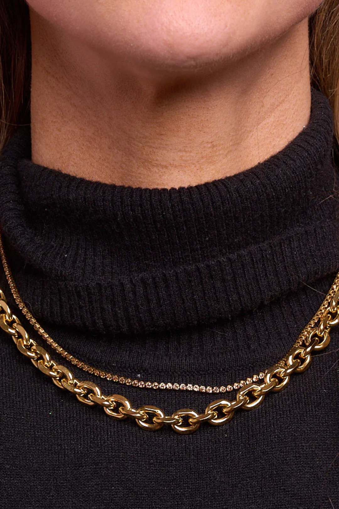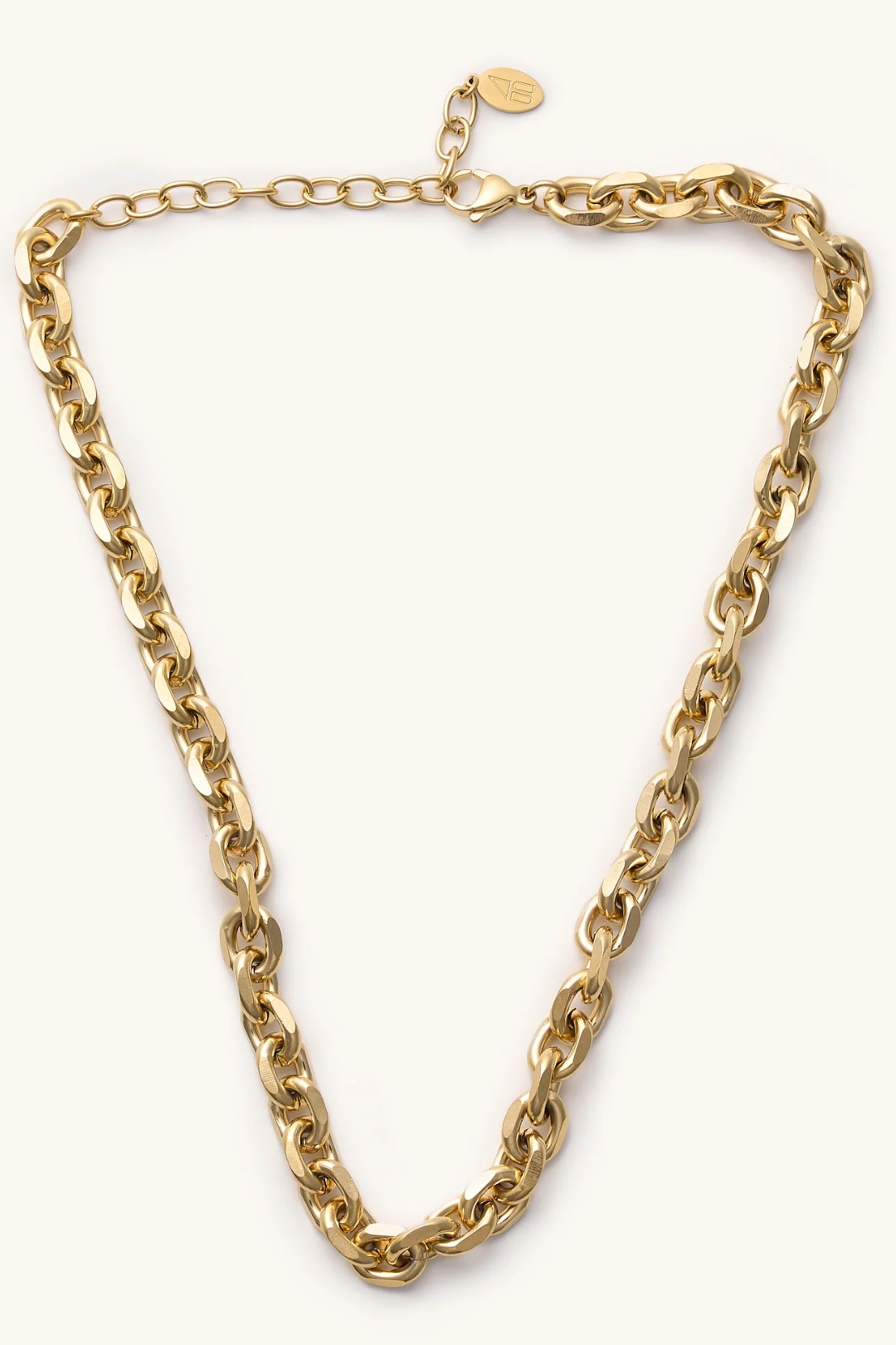 The Eloise Chunky Chain Choker in waterproof 14k gold-plated stainless steel is a statement staple that's impossible to ignore. This piece stays flawless rain or shine, giving your neckline that instant power-up. Perfect for elevating casual days, nights out, or layering over tees and slip dresses for an extra dose of luxe attitude. Stack it with delicate chains or wear it solo to let the choker do all the talking.