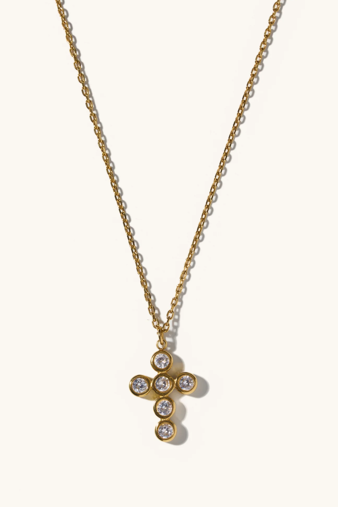 The Faith Gem Cross Necklace blends timeless symbolism with modern sparkle. Designed with a delicate gold chain and a cross pendant set with shimmering cubic zirconia gems, it catches the light in the softest way. Simple, radiant, and meaningful—this is a piece you'll treasure daily. Perfect for everyday layering, special occasions, faith-inspired gifts, confirmations, birthdays, and sentimental moments.