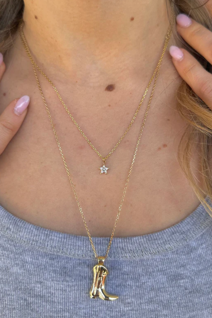 The holy grail and good luck charm of every cowgirl. Put on this Gold Cowboy Boot Necklace by Nikki Smith Designs and you'll feel ready to take on the day. The perfect accessory to add a little country style to even most city outfits. Adorable on its own or layered with a more stylish piece. For a matching item, pair it with the Cowboy Boot Studs.